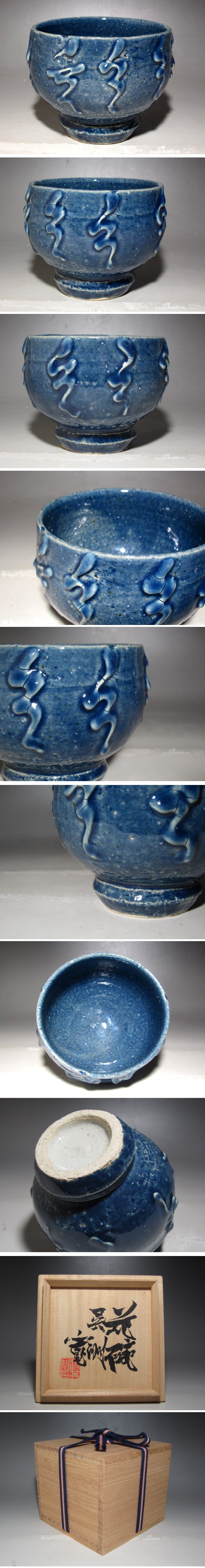 河井寛次郎作の呉須花碗です。 美しい景色の風合い豊かな作品です。 【河井寛次郎(かわいかんじろう)1890-1966】 師弟関係を重んじる陶工の世界にあって、学校という教育機関にて指導を受けた新しい世代の陶工となる。 釉薬の研究や、中国陶磁など過去の陶磁の模倣や研究も行い、京都の五条坂(現在の「記念館」の地) に窯を築き、鐘渓窯と名付けて独立。 サイズ 直径12cm/高さ9cm(多少の誤差はお許しください) 状態 一見して疵やヒビ・直しは見られません。 骨董品という事をご勘案頂き、時代経過のスレや、小さな傷がある場合があるかもしれませんのでご承知置きください。 | |||