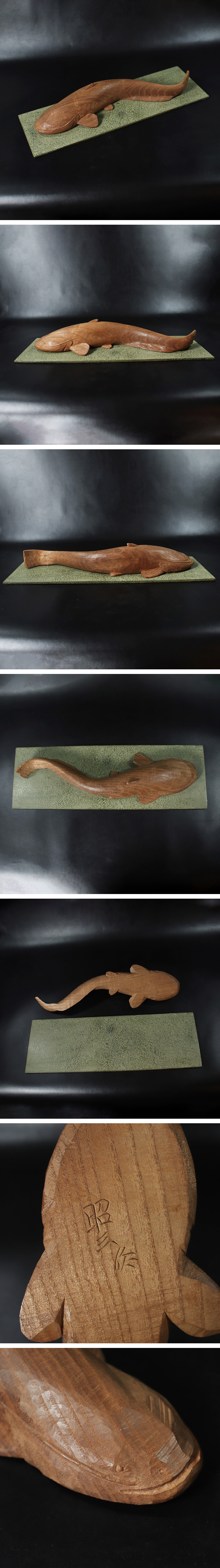 鯰という題材を写実と造形美の均衡の中で昇華した、静謐で品格ある木彫作品です。