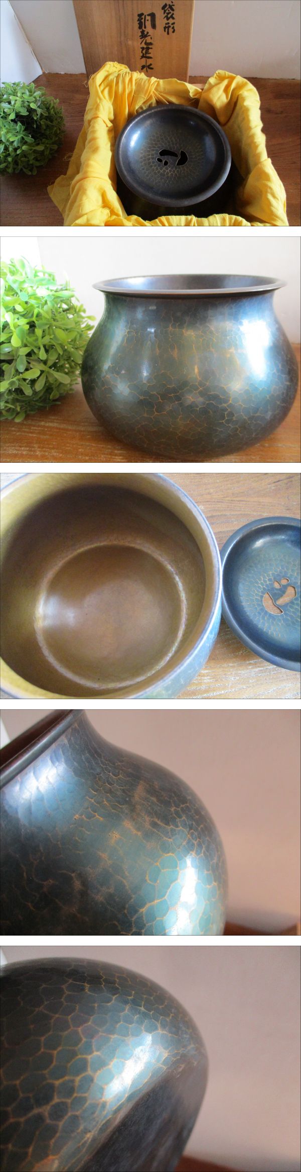 【美品・共箱入】玉川堂 銅製 袋型 鎚起銅製 建水 銅器 鎚起銅器 銅製品 茶こぼし 茶道具 煎茶道具 金属工芸 骨董 裏書きあり 伝統工芸品 | |||