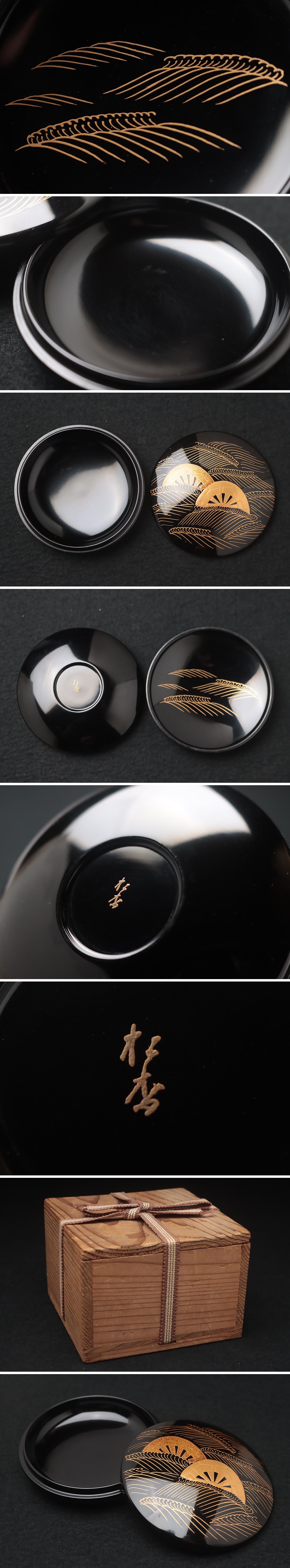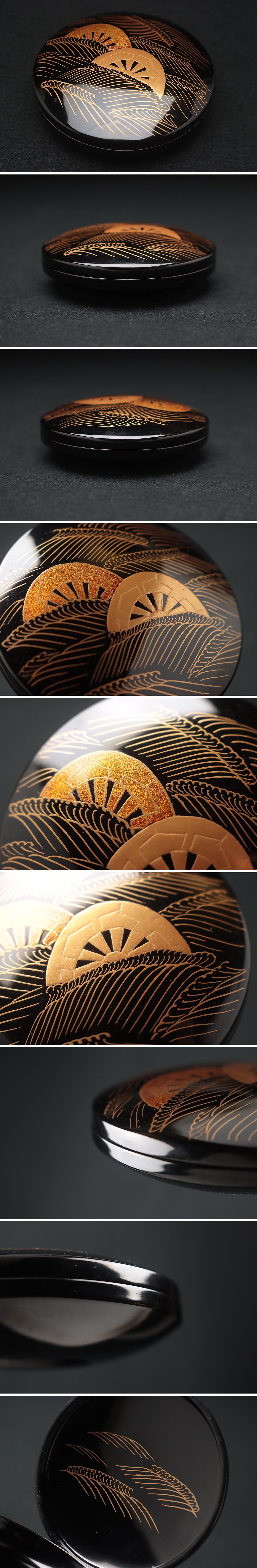 | ◆ 【松杏 作】波片輪車蒔絵香合 径8.3cm 木箱附・波片輪車金蒔絵香盒 香道具 漆工芸 漆器 伝統工芸 ◆