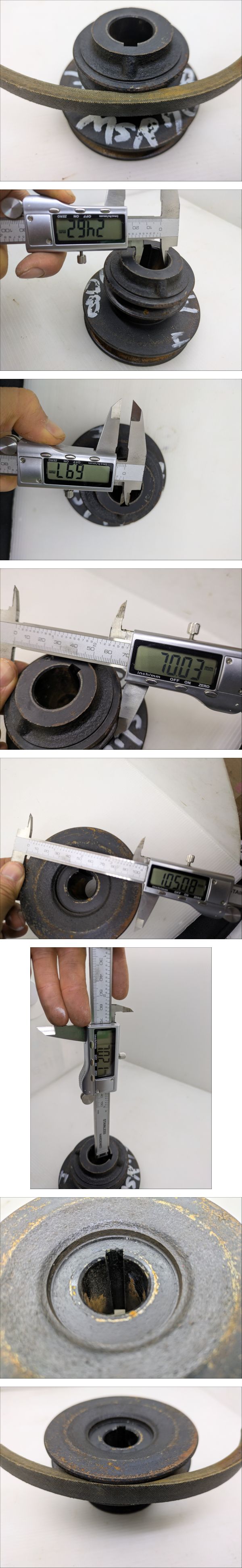 | ●●最後まで読んで下さい●●納得した上でご入札してください●● ●機械専門アカウントは**こ ち ら**です。 ●当方の別出品物を同時購入しても送料分安くなりません。 ●発送料金は入札ボタン付近にあり、沖縄、北海道、離島以外一律です。 ●塩尻市から発送します。 ●離島発送はできない場所がございますので、事前にお問い合わせください。 ●発送日は月、水、金、日です。急ぎの場合はご連絡をお願いします。 ------------------------------------------------------------------------------------------- ●MSR708フジイ除雪機から外した2連のプーリーです。 ●A/Bベルトです。 ●軸 径:約Φ25mm ●鍵 幅:約5mm ●プーリー外径:約Φ70/105mm ●全体 厚さ:約102mm ●書いたインクは消さずに発送します。 ●素人寸法のため、測定誤差があります。 ●中古品のため、サビや汚れがあります。 ●錆は各自で取り除いてください。 ●現状写真の通りのまま送ります。 ------------------------------------------------------------------------------------------- ●下の方にも画像がございます。※たまに写真の枚数が不足していて画像がない場合があります。 ●落札後、ご指定配達の時間帯がある場合はあらかじめご連絡してください。 | |||