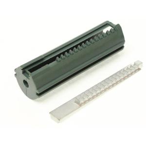 TOKYO MARUI マルイ サバゲー サバイバルゲーム エアガン トイガン 電動ガン メンテナンス 改造 修理 補修 純正部品 ディープファイアー DF-CPP16 ICS CYMA VFC G&P KSC TOP M4A1 M16 G36 AK47 MP5 G3 AUG P90 M14 商品説明 ITEM INFO GF配合ポリマーで高強度を実現! DEEP FIRE ポリマーピストン ハーフティースです。各社電動ガンに適合します。 GF配合ナイロン系ポリマー樹脂製。非常に高強度で触ってみても堅さ感があります。ポリカに比べ少し比重が重いので重量化にも向いています。 歯はハーフティース(半歯)です。セクターの内歯が大きいトルクギアを導入しているガンにはこの半歯が必須になります。 歯数は15枚で最後の1枚のみスチール歯になっています。 ピストンは電動ガンで最も重要で壊れやすい部位でもあります。耐久力の高い素材、設計のモノがやはり安心ですね。 商品基本情報・スペック ITEM SPEC ●商品名 : DEEP FIRE ポリマーピストン ハーフティース ●商品番号 : H3013G-H ●カラー : グリーン ●対応 : 各社電動ガン(マルイ準拠)、※電動ハンドガン不可 ●材質 : ナイロン系ポリマー樹脂 ●重さ : 13.5g 注意事項 ITEM NOTE ∇商品固有の注意事項 ※組み込みには改造・整備の経験が必要になります。また海外製品の為、個体差、精度の問題で加工調整が必要な場合がございます。 ※メタル歯部分は取り外しが可能になっており、接着がされておりません。原則外れる方とは反対に力が加わりますので外れることはないと思いますが、念のためご使用前に接着されることをお勧めします。 ∇ご購入時の留意事項 ※商品はすべて点検してからのお届けになります。商品によってはパッケージの開封等を行う場合もございますことをご了承ください。 ※商品には万全を記しておりますが、万一不備な点がございましたら、お手数ですがお問い合わせフォームにてご連絡頂ますようお願い致します。なお、海外製品につきましては、輸入時についた若干の傷、痛み等が見られる場合がございます。 国内製品のような完全品をお求めの方はご遠慮下さい。 ※商品が適合外であった場合、またはお客様都合による交換・返品・返金は出来ません。よくお確かめの上、ご購入下さい。 ※モニター環境により、実際の商品の色と若干異なる場合がございますのでご了承下さい。 ※他サイトでも同時販売の為売り切れの際はご了承下さい。 ※売り切れの際は早急にご連絡させて頂きます。(当社休業日を除く) 関連商品 RELATED ITEM