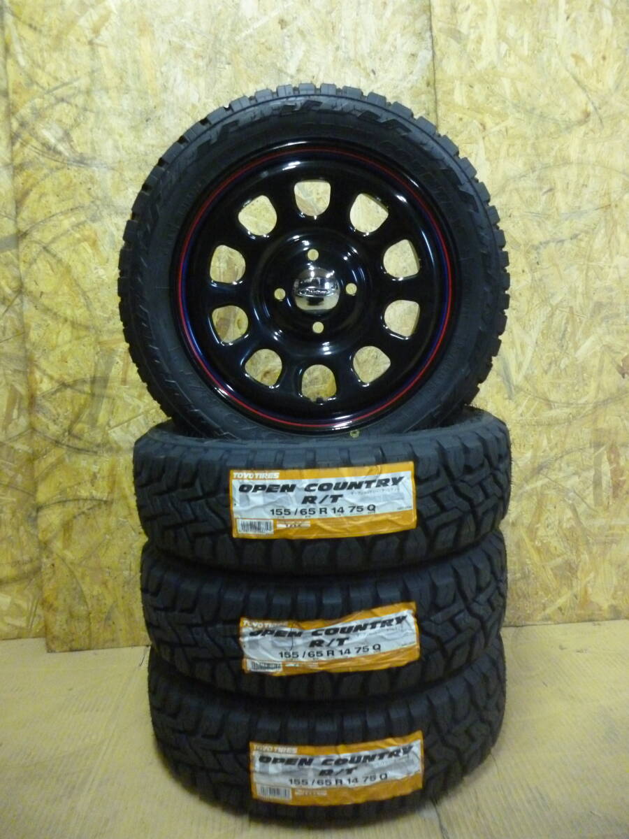 商品詳細 【ホイールサイズ】 F:R 14×5J オフセット42 PCD:100-4H ハブ径68mm 【タイヤサイズ】 F:R 155/65R14 新品 TOYOオープンカントリーR/T 【ホイール】 ・ホイールは新品未使用品になります。 ・カラーは、ブラックになります。 ・新品未使用品ですが、多少の小傷や汚れ等がある場合がございます。 状態は画像を参考にして下さい。 【タイヤ】 ・タイヤは新品未使用品です。 ・タイヤの製造年数は、2024年製です。 ・多少のラベルの剥がれ等はご了承下さい。 ●タイヤ、ホイール共に状態は個人差がございますので、画像を参考にして下さい。 ※マッチング等はご落札前に必ずネットやお店等でお調べ下さい※ (題名に記載がある車両でもマッチング等は必ずお調べ下さい) ☆午前中に入金確認が取れた方のみ当日発送になります。 ※法人のお客様は平日14時までのご入金、土曜日11時までのご入金で当日発送できます。 ※その他詳細はつきましては、説明文を最後まで良くお読み頂けますようお願い致します。 | |||