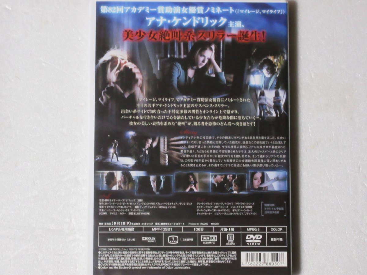美少女絶叫系スリラー誕生!出演=アナ・ケンドリック、タニア・レイモンド、ポール・ウェズレイ、チャック・カーター、他監督=ネイザン・ホープ製品状態=レンタルアップ品です。レンタル管理用シールがジャケット・ディスク等に貼られています。ディスク自体は、少しうすい「スレキズ」がはいっていますが、全体としては、良いコンディションの品物です。