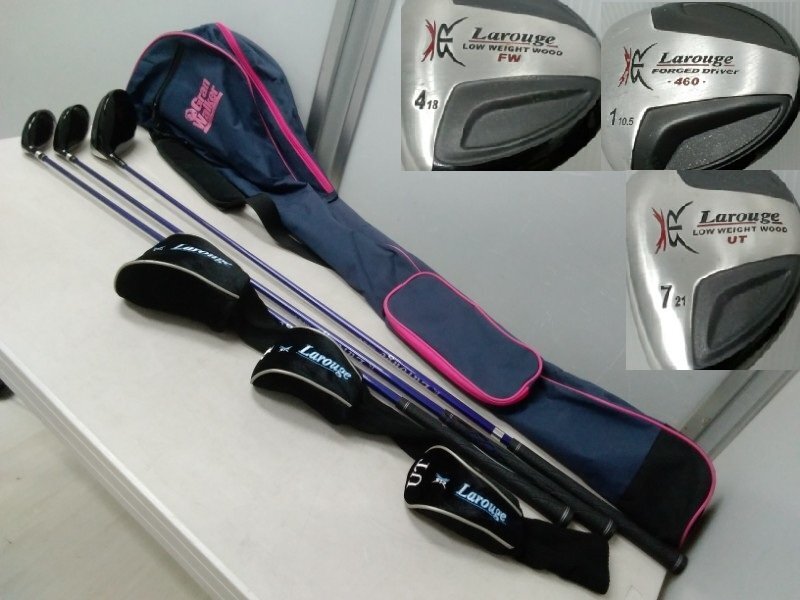 ・Larouge #1 10.5°FORGED Driver 460 FLEX-SR 全長約1175㎜ ・Larouge #4 18°LOW WEIGHT WOOD FW FLEX-SR 全長約1100㎜ ・Larouge #7 21°LOW WEIGHT WOOD UT FLEX-SR 全長約1070㎜ ・Larouge ヘッドカバー #1・#4・#UT ・Gran Walker ゴルフケース 状態は使用品となり、擦り傷・小傷・汚れ・ グリップにゴムの亀裂・硬化跡などあります。 取扱説明書なし。画像に写っている物が全てとなります。 |