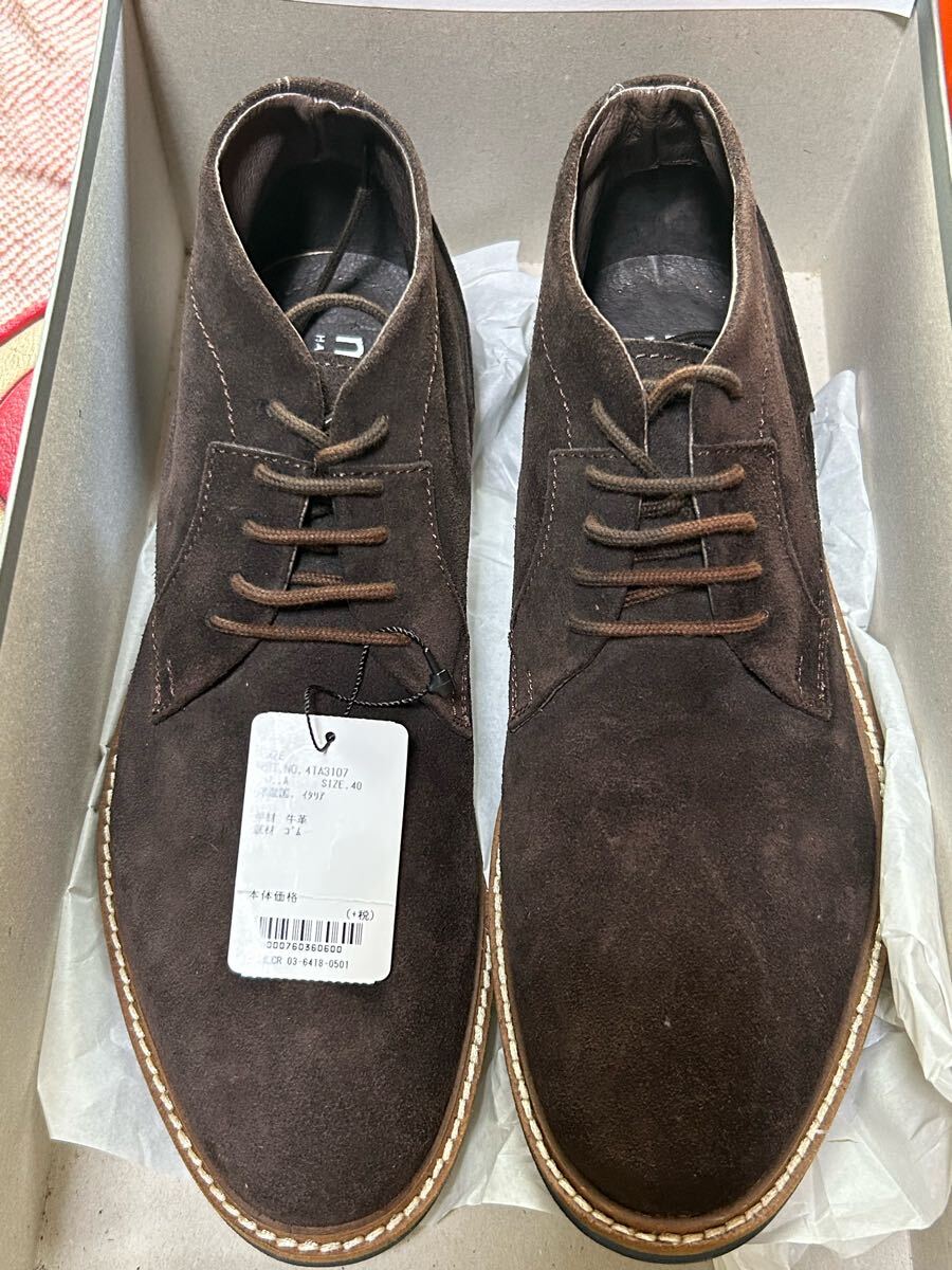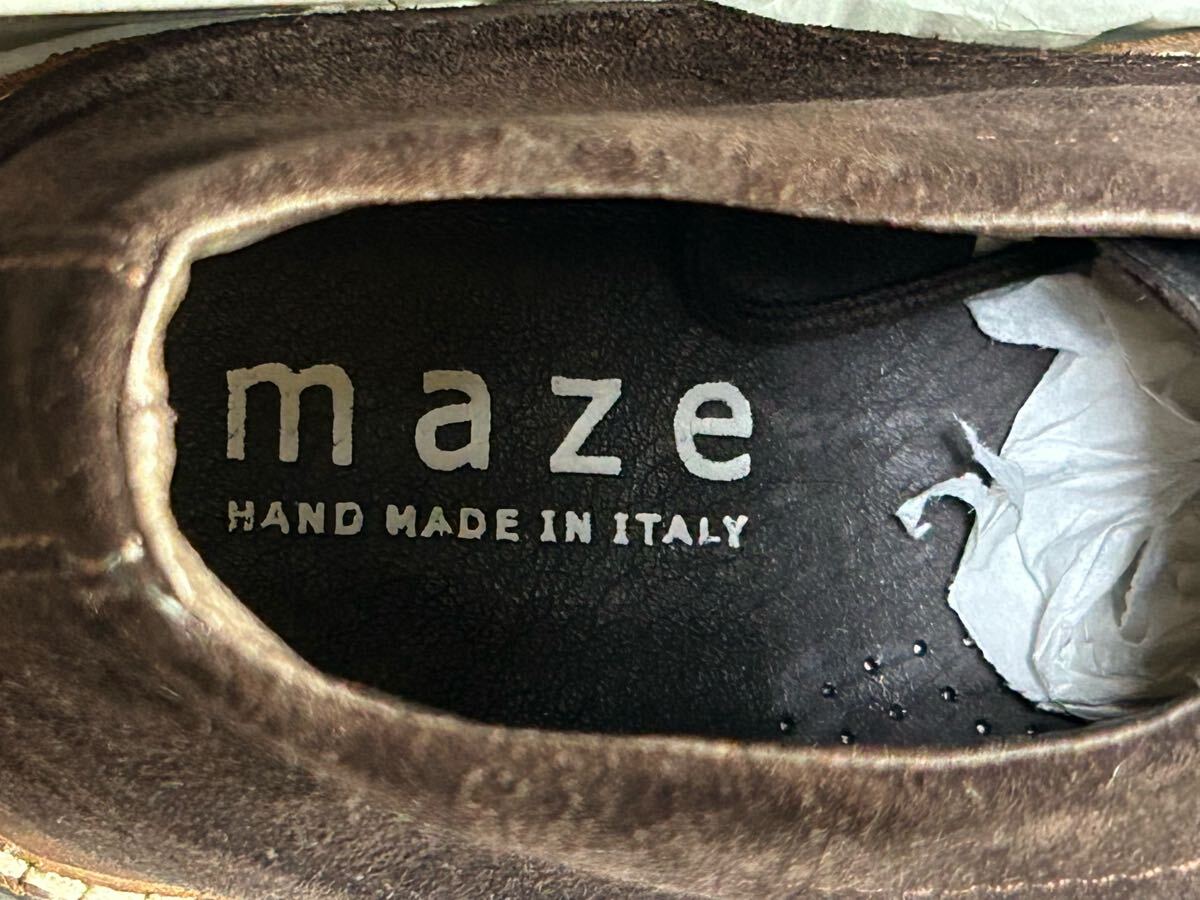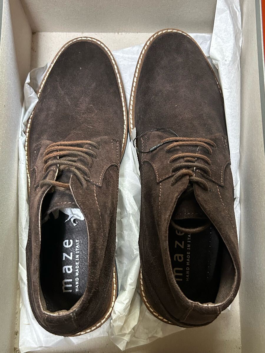 イタリー製、MAZEのブラウンスエードのチャッカブーツです。サイズは40表記なので、国内25センチ相当かと思います。表面は牛革のスエード、ソール部はゴム製です。タグ付き未使用品です。秋〜冬にかけてのおしゃれの季節に最適、温かみのある色合いです。本体とソールはステッチダウンで縫製されているようです。| 出价者 | 信用 | 价格 | 时间 |