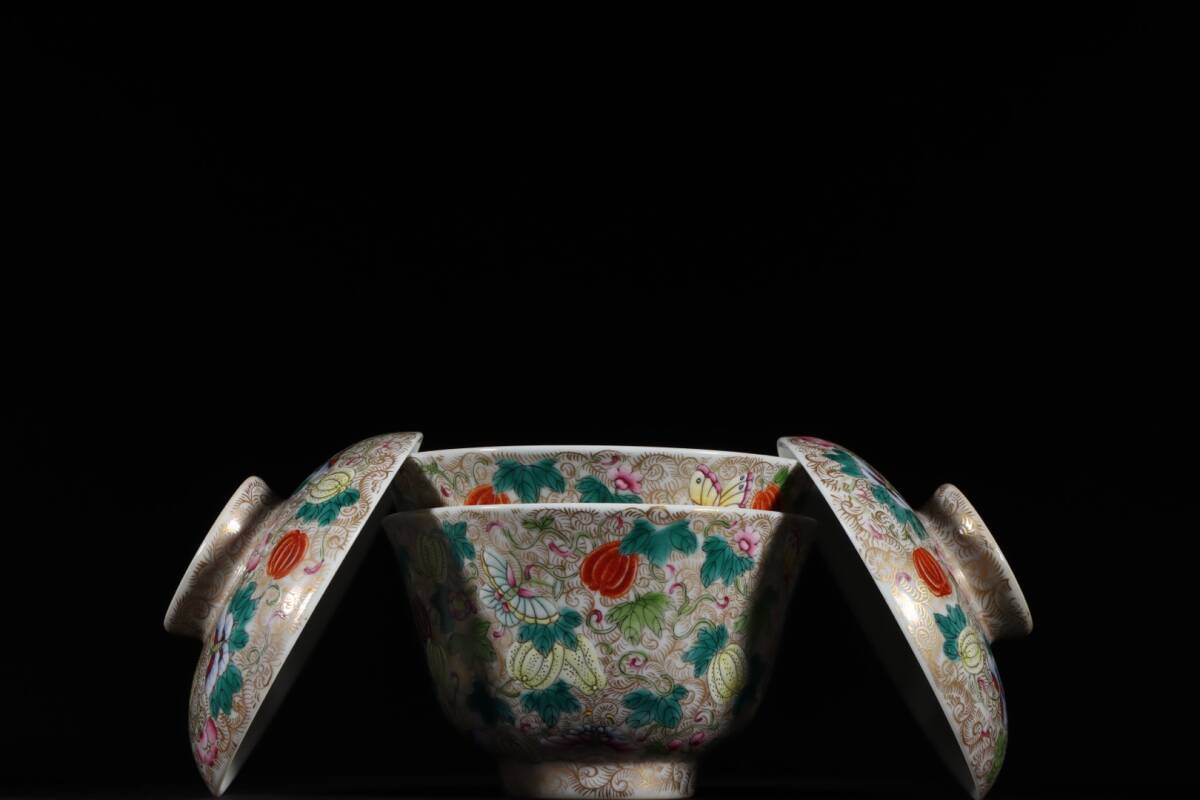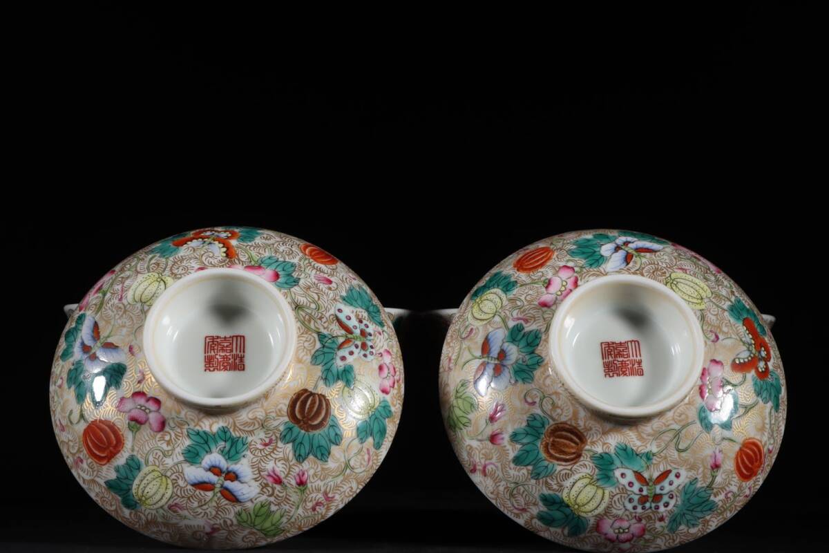 中国磁器 陶芸 磁器『清代嘉慶粉彩蒔金花果紋蓋碗一対です』施釉陶 古代工芸品 陶芸 精美彫 置物 收藏品 | |||