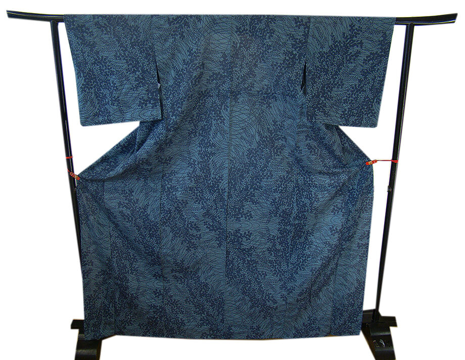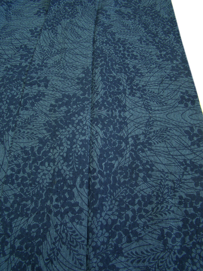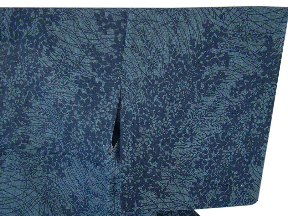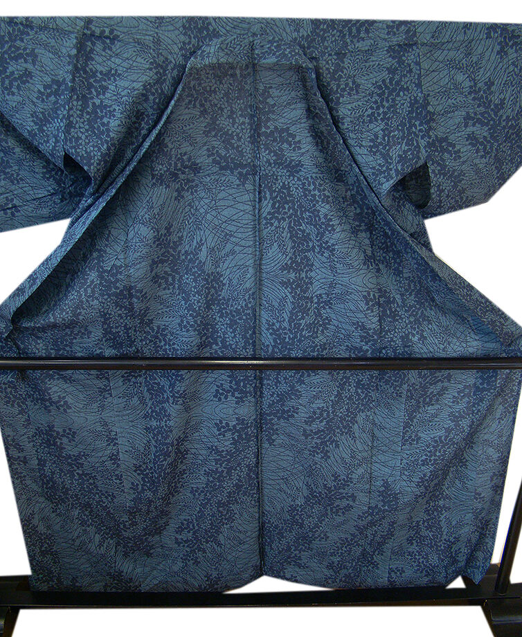 | 商品説明 | こちらのお品は「単衣」ですので5月、6月、9月にお召頂ければと思います。 着物には、大きく分けて「袷(あわせ)の着物」と「単衣(ひとえ)の着物」と「夏着物」があります。 反物(表地)を着物に仕立てるときに、裏地類をつけるものを袷の着物、 つけないものを単衣の着物と呼び、胴裏や八掛といった裏地がつかない一枚ものの着物です。 また裏地がないため、座る時などにヒップのラインが目立たないよう、 居敷当て(いしきあて)の生地をつけることもあります。 居敷当ては付いておりません。 とてもしなやかでさらりとして手触り良く着心地良い涼やかな風合いの紬地の小紋、 藍色地に藍鉄色の草木柄が洒落感高い着物姿を演出しております。 また、バチ衿仕立てとなっております。 |