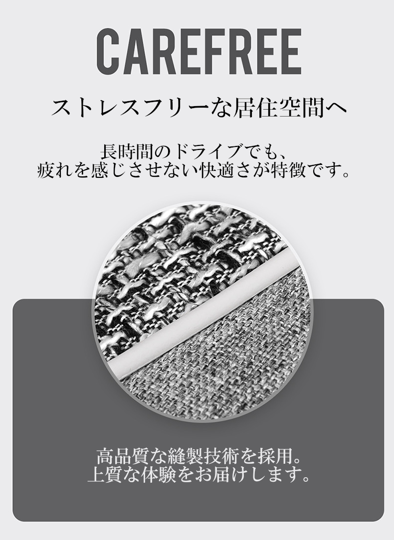 | 商品内容 汎用シートカバー 前席2脚セット 特徴 材質:リネン シートタイプ:全面フルカバータイプ サイドエアバッグ対応 内容品:前席用カバー2個 機能性:5層構造、汚れ防止、シート保護、快適な通気性 収納:背面に収納ポケット付き 選べる4色:ベージュ/ブラック/ブラウン/グレー ※カラーの指定がない場合はベージュでの手配となります ・高品質リネン素材により汚れにくく丈夫で長持ちします ・上質な質感があり、シートをオシャレに彩ります ・お車のシートを汚れから保護します お子様やペットがいるお客様へオススメです! ・オールシーズン対応 リネン素材の特徴 ・抜群の吸水性 リネン素材は吸水力や発散性に優れた素材です。 水分を発散しカビや雑菌の繁殖を防ぐことで嫌なニオイを抑制します。 ・丈夫で長持ち リネンは天然繊維の中でも強靭な素材で腰が強く耐久性があります。 ・汚れがついても落ちやすい リネンは汚れが染み込みにくい性質があり抗菌性があると言われています。 汚れがついても落ちやすく、また繊維の毛羽が付着しにくいので衛生的です。 ・使うほど肌に馴染み、変化を楽しむリネン リネンは独特ななめらかさと優雅な光沢感があります。 触れてもチクチクせずソフトな肌触りが特徴です。 ・通気性・保温性に優れ、通年適した素材 寒い冬は体温で暖まった空気で保温され、 暑い夏は上手に水分を逃がしサラッとした肌触りで過ごすことができます。 適合確認 ※タイトルにある車種は参考車種になります。 ※タイトルにある車種でもグレード等によって装着できない場合があります。 必ず商品画像をご参照ください。 |