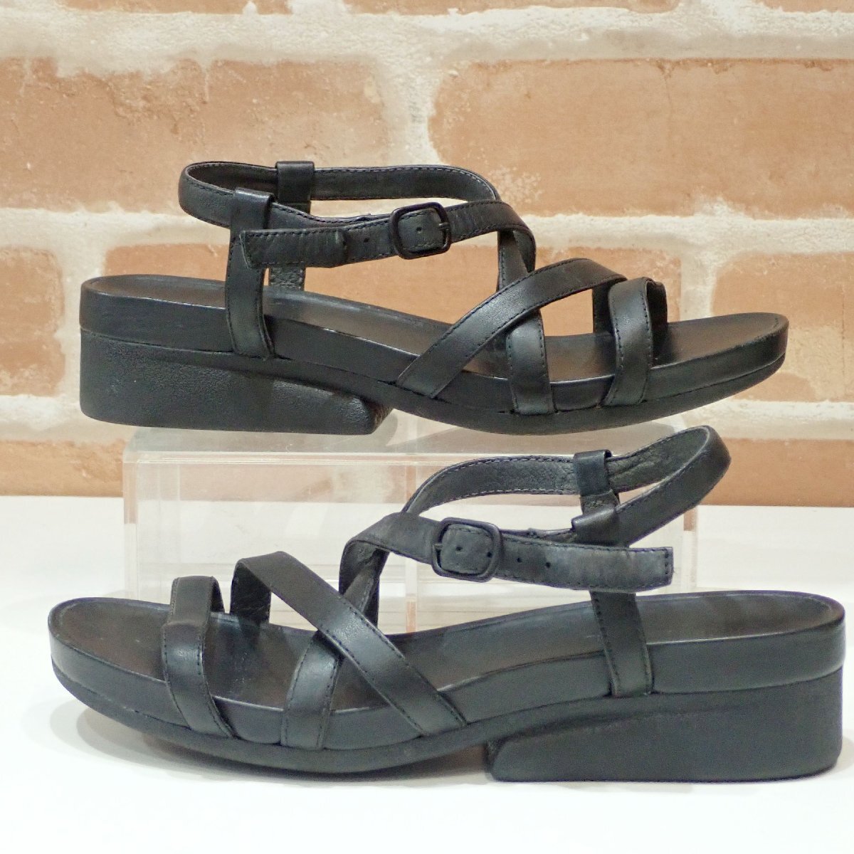 美品 CAMPER レザー クロスストラップ サンダル 35サイズ(22.5cm相当) 黒系 (約)全長23cm、ヒール高3cm、ストーム1.8cm、甲周り12cm |