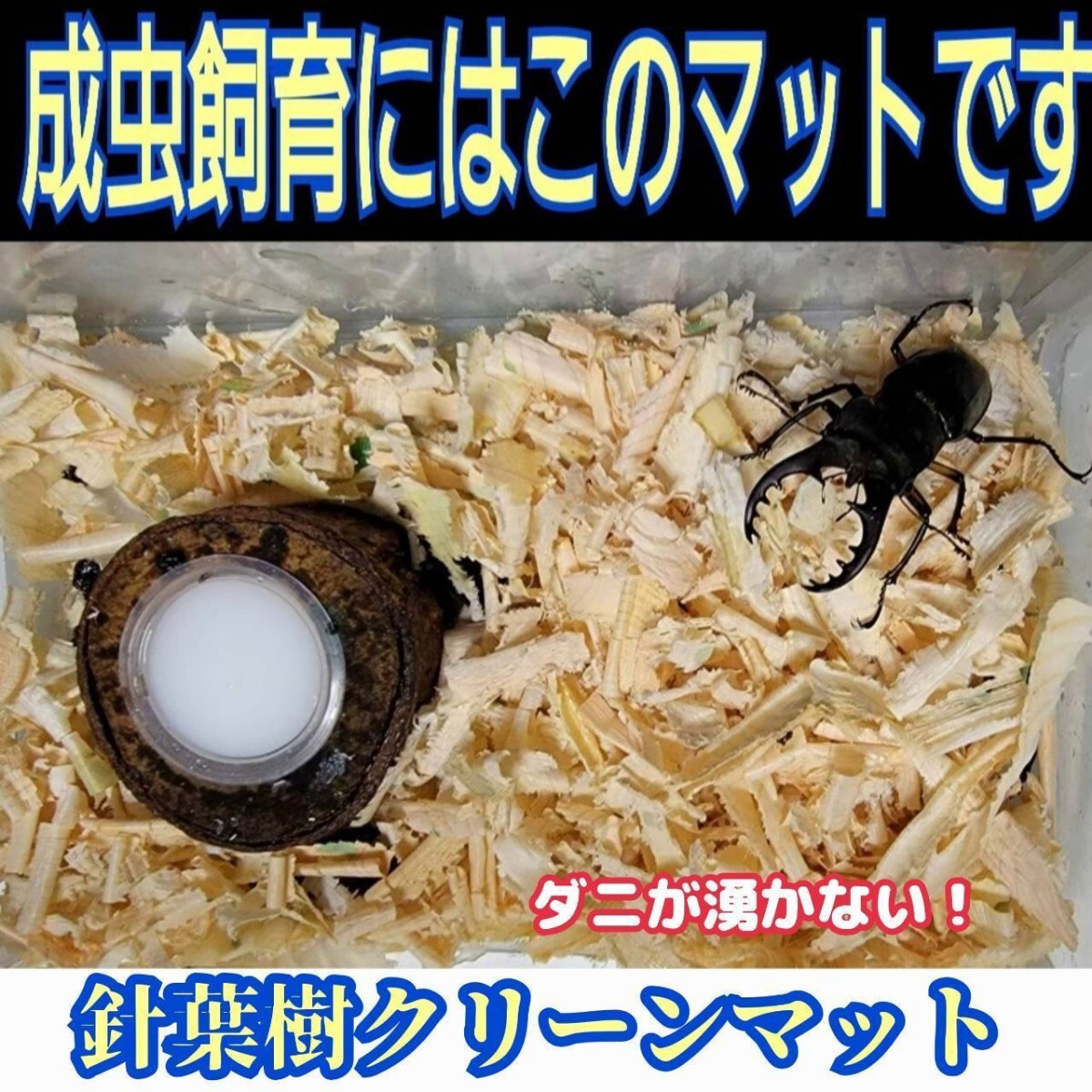 (写真添付欄に画像を10枚載せてありますのでご覧下さいませ) カブトムシやクワガタの成虫管理には明るい色の針葉樹マットが断然良いです! 一般的な昆虫マットは黒っぽい色なので飼育ケース内が暗くなってしまい、同じような色のカブトムシやクワガタは目立たなくなってしまいます。 その点、針葉樹マットは明るいクリーム色ですので、飼育ケース内がパッと明るくなり、クワガタ、カブトムシと対照的な色合いのため生体が栄えてかっこ良く見えハッキリ観察できます!