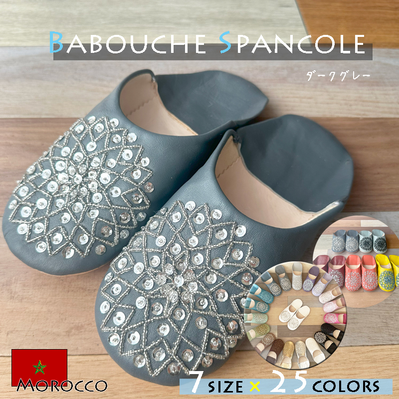 《24cm~24.5cm×ダークグレー》モロッコ バブーシュ スリッパ ルームシューズ 新築祝い 在宅ワーク オフィス 北欧