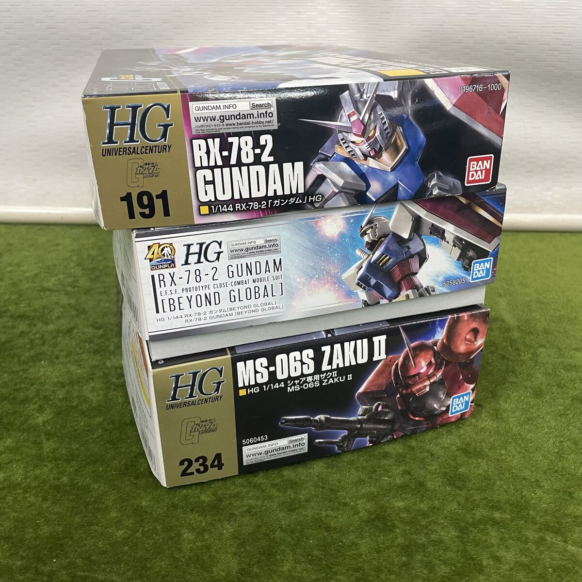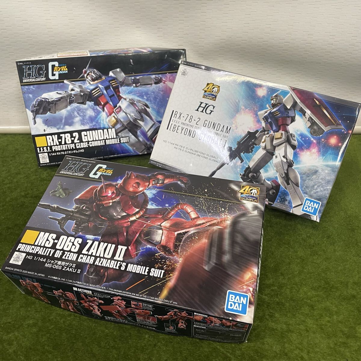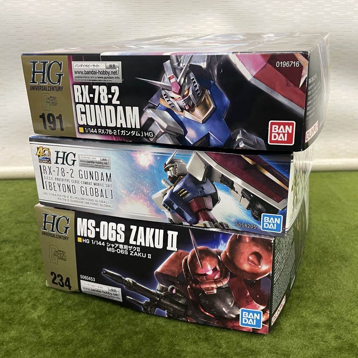 P11★☆未組立保管品 BANDAI プラモデル/ガンプラ HG 1/144 3点まとめ RX-78-2 ガンダム/シャア専用ザクⅡ/ガンダム BEYOND GLOBAL