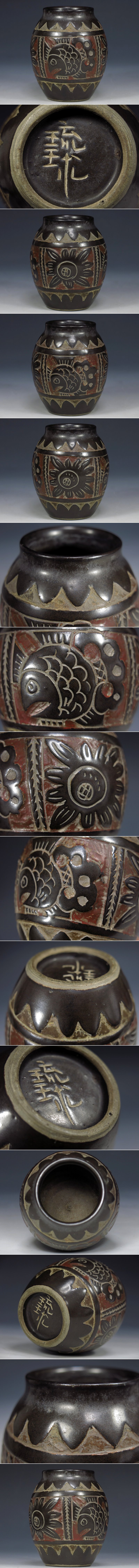 商品名 | 古琉球 琉球焼 壷屋 魚花彫文花瓶 花器 花入 瓶 壺 時代 古壷屋 壷屋焼 |