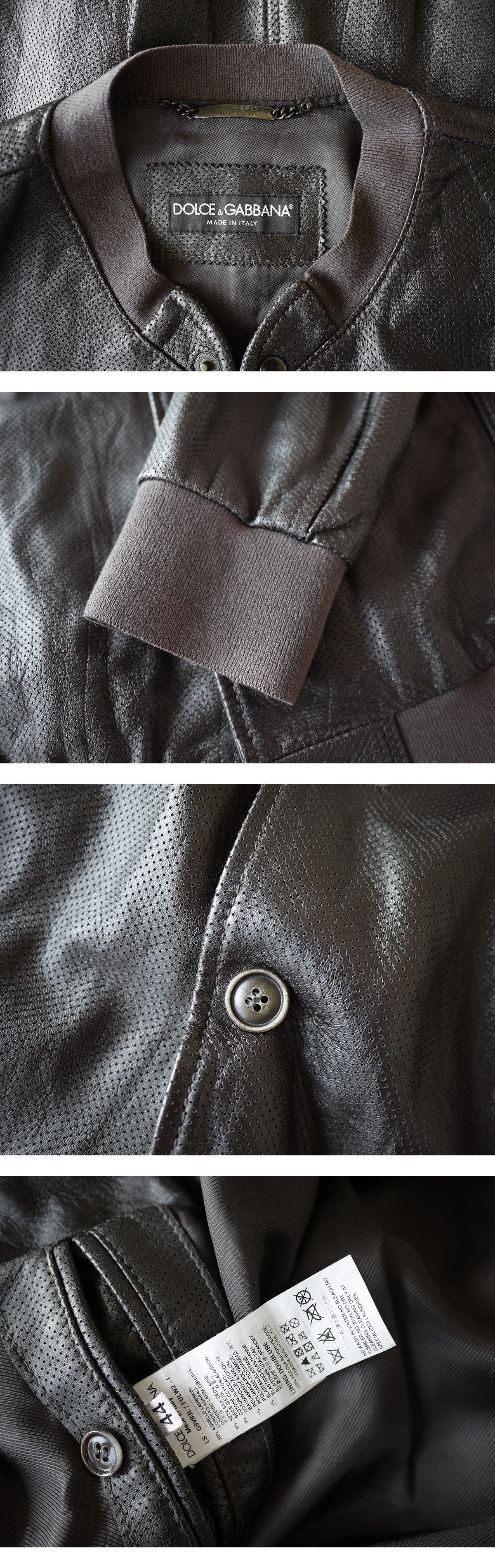 品質、デザインどれをとっても一級品でございますので、一生もののアイテムとしてお勧めさせていただきます。この機会にぜひよろしくお願いいたします。 brand Dolce & Gabbana made in Italy price \400,000(参考上代) material Lamb leather 80% silk 9% nylon 1% elastane 1% color Brown size 44 肩幅44 着丈60 袖丈67 身幅49 (多少の誤差はご了承ください) 状態 使用感の少ないきれいなお品物です。裏地含めダメージは見受けられず末永くご使用頂ける状態です。 |
