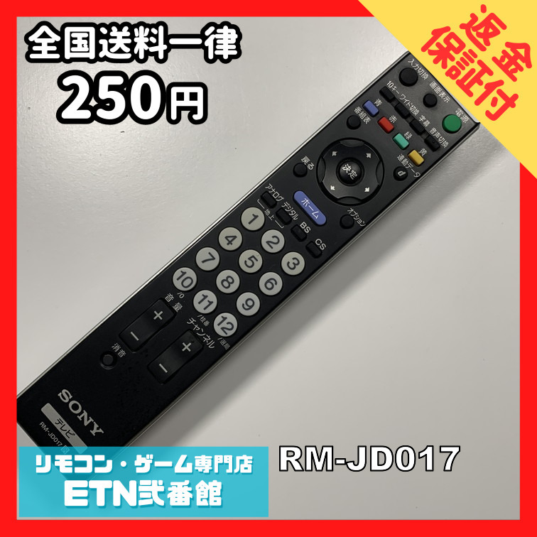 B1A015 【送料250円】 TV リモコン / SONY ソニー RM-JD017 動作確認済み★即発送★ テレビ
