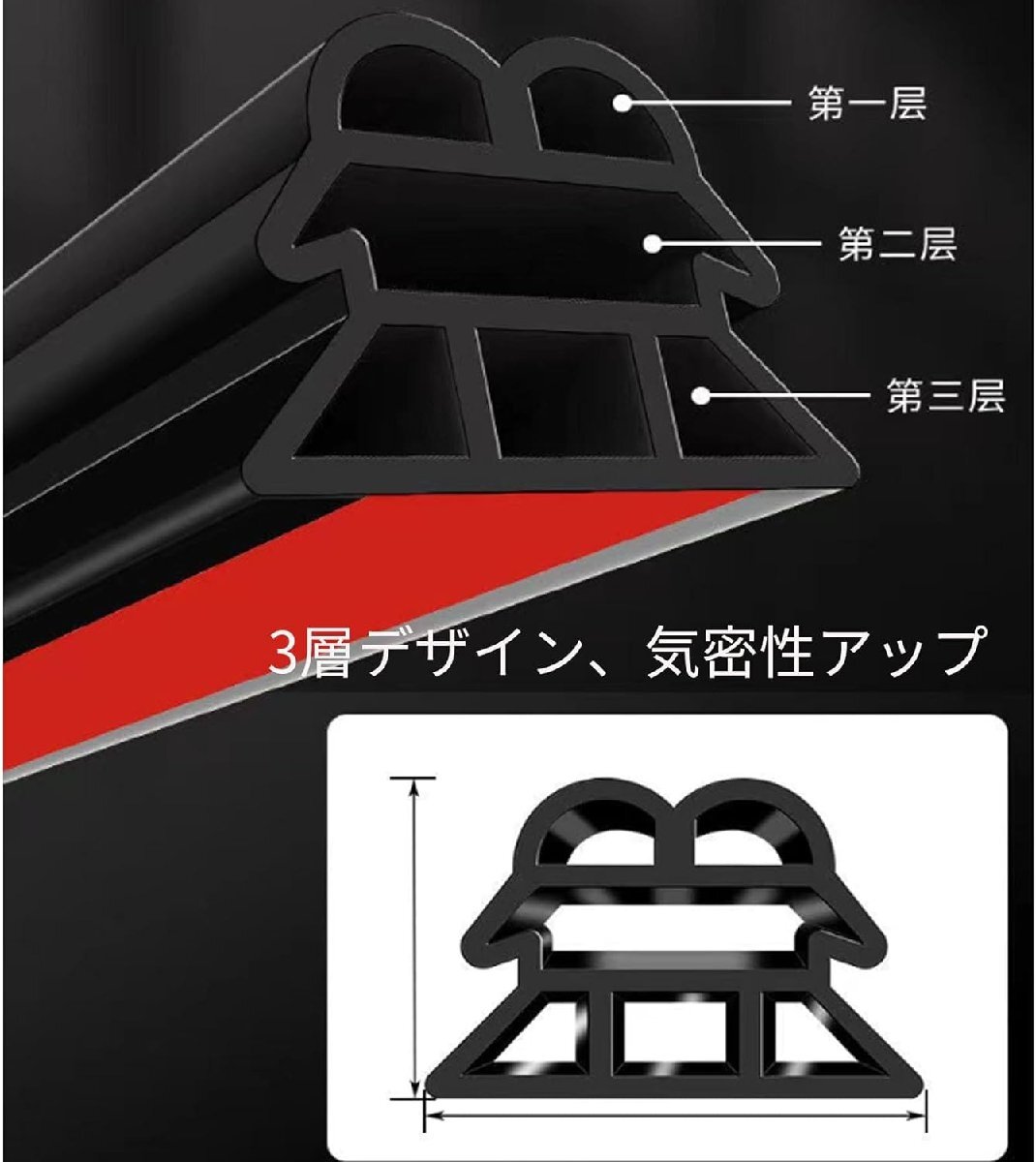 3層加厚デザインによる密封性能で風切り音を防止!防水、防塵、防音の効果も期待できます。3層なので遮音性が向上し、より運転の騒音を減らし車内の音を外に漏らす騒音も減らしま!車内エアコンの効果もアップします!両面テープ付きなので取り付けも簡単!シールをはがして、ボディやドアの設置個所に合わせて貼るだけ!はがれにくく抜群の耐久性です!室内の音やドアの閉める音を軽減します!3層なので6個の空間があり、加厚ダブルタイプなので遮音性・強度・持続性が増しております。【サイズ】厚み1cm長さ 10m