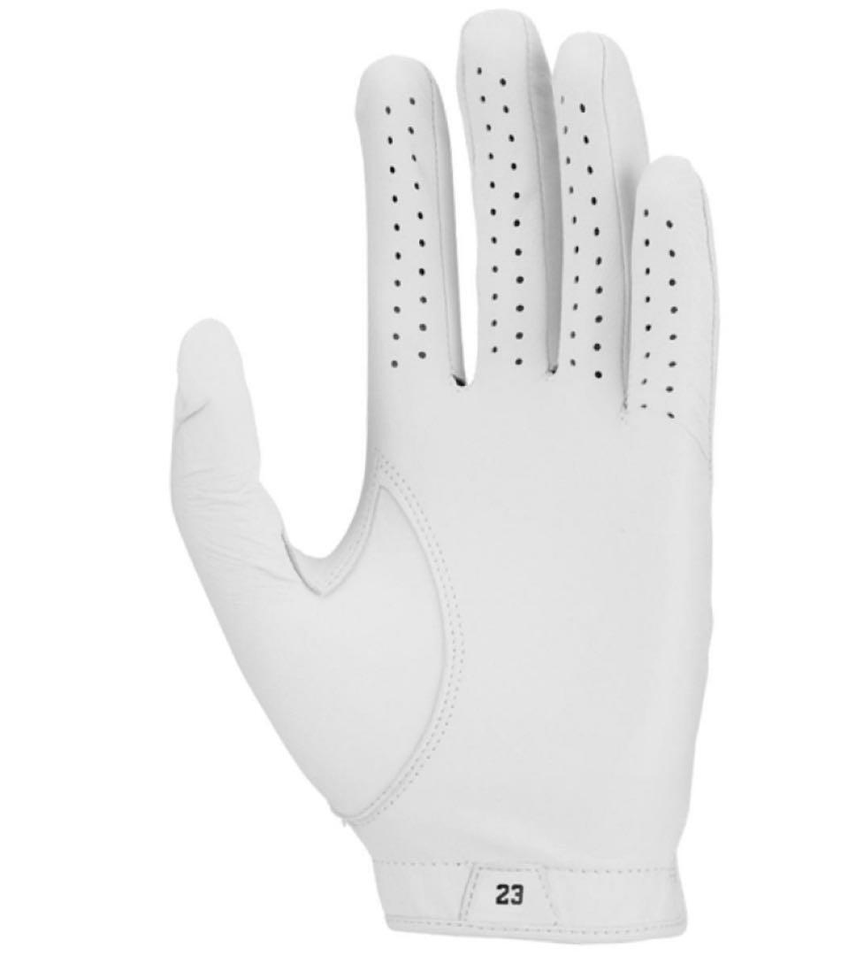上質な羊革を使用し、柔らかくしなやかな着け心地 抜群のフィット感とグリップ力でスイングの安定感UP 手の甲にはストレッチ素材を使用し、自然な可動を実現 通気性にも優れ、長時間のプレーでも快適 ・ スペック サイズ:L(25cm) 素材:羊革、ポリエステル、ポリウレタン、ナイロン カラー:ホワイト×ブラック 入数:1枚(左手用) ジョーダンらしい洗練されたデザインで、プレー中も視線を独り占め!ゴルフでも魅せたいあなたにぴったりの一枚! 新品未使用、即購入OK!
