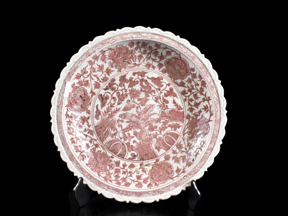 商品名 | 【雲】某名家収蔵品 中国古玩 唐物 釉裏紅花唐草花紋輪花大皿 飾皿 直径41cm 古美術品(辰砂)DJ453 DT1gs4f |