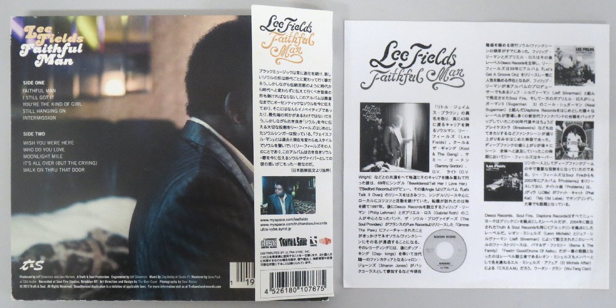 LEE FIELDS / FAITHFUL MAN (2012)ー TSCDJ018(TS018-CD) 帯付き ジャケット:VG 盤:VG デジパック、国内仕様輸入盤。 日本語解説付き。 盤面に軽いキズ、ジャケットに軽い擦れあり。 (詳しくは「商品情報の見方について」をご覧下さい。) |