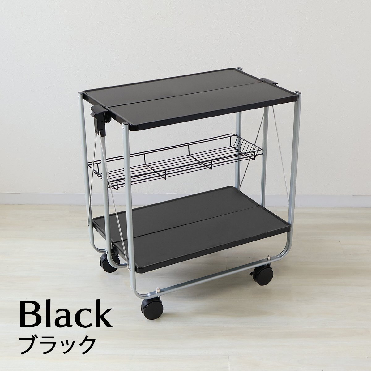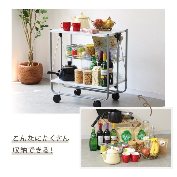 折りたためるキャスター付きのキッチンワゴン。 組み立てはとっても簡単!4つのキャスターを取り付けるだけ! キッチン以外にも大活躍! 様々なシーンでご利用いただけます。 幅10cmなので、狭い隙間でも収納しやすく移動も楽々。 使わないときは狭い隙間にスッと入れて保管が可能。場所を取りません。 ■商品コード:MBC001BK ■商品仕様 カラー:ブラック サイズ(約): 高さ70cm×幅67cm×奥行43cm(設置時外寸) 高さ86cm×幅67cm×奥行10cm(折りたたみ時外寸) ■注意事項 ・組み立ての際、ワゴンの真ん中を手で押さえるように組み立てないようにしてください。 隙間に手を挟んでけがをする恐れがあります。 ・お子様のみの組み立てはお控えください。 ・商品は、モニターによって色合いが異なって見える場合があります。 ・仕様・デザインは改良のため予告なく変更することがあります。 ■保障期間 7日間 ※商品到着後7日以内の初期不良・破損のみご対応させていただきます。 【新品未使用品です】 |