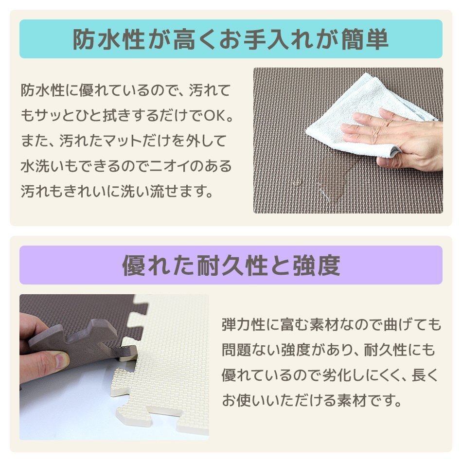 | 大型サイズだから、敷く枚数も少なく、設置もラクラク! カッターやはさみで簡単に切れるのでレイアウト自由自在! 足音をやわらげてくれるので、子供部屋やフローリングのお部屋に最適です! 適度なクッション性が転倒時に衝撃を和らげてくれます! 冬は床下からの冷気をカット! 夏は冷房による温度を効率よく保ちます。 汚れた部分は取り外して水洗いが出来てカンタンお手入れ♪ 嬉しい!サイドパーツ付き! 壁ぎわに敷いても、隙間なくキレイに。 掃除がラクラク!! 室外用でも使える! 簡昜プールの下に敷いてもOK! アウトドアにも使えます! ペットがいるご家庭にもおすすめです。 ■商品コード:FCA0360M ■商品仕様 カラー:ブラウン単色 サイズ(約):幅60×奥行60×厚み1.0cm(※1枚) 素材:PE素材 ■商品内容 ジョイントマット×32枚 サイドパーツ(角付きパーツ32本、角なしパーツ32本) ■注意事項 ※EVA樹脂の臭いが最初はある程度しますが、人体には影響ありません。 臭いによる返品はお受けできませんので、臭いの気になる方はその旨をご了承の上ご落札をお願いいたします。 ※重量物を載せますと、マットが凹み変形する恐れがあります。 ※入荷時期によって、厚みや幅に多少の誤差がある場合がございます。あらかじめご了承ください。 ※仕様・デザインは改良のため予告なく変更することがあります。 ※床材との温度差で製品が反る場合があります。 ■保障期間 7日間 ※商品到着後7日以内の初期不良・破損のみご対応させていただきます。 【もちろん新品未使用品です】 |