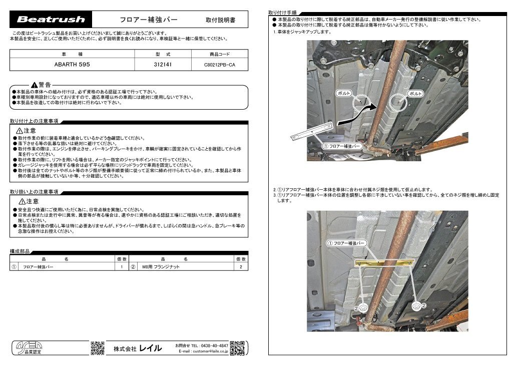 | 取付 | 加工無しのボルトオン装着 取付所要時間目安 : 約30分 | ||