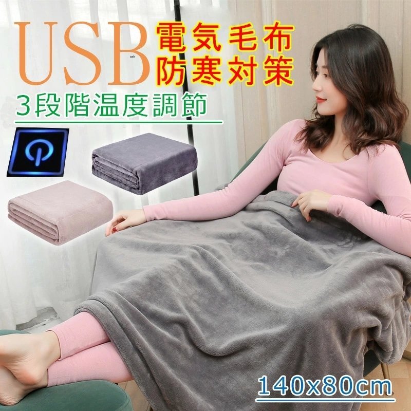 電気毛布 USB 大判 フランネル素材 電気敷き毛布 3段階温度調整 暖かい 省エネ 電気ひざ掛け 肩掛け 膝掛け 掛け敷き兼用 ☆2色選択/1点