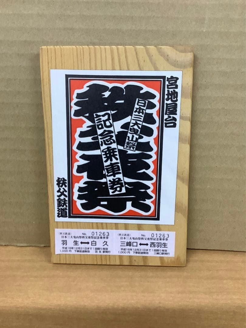 平成16年秩父鉄道の秩父夜祭記念乗車券板状のものと、宮地屋台の山車のミニチュアです。