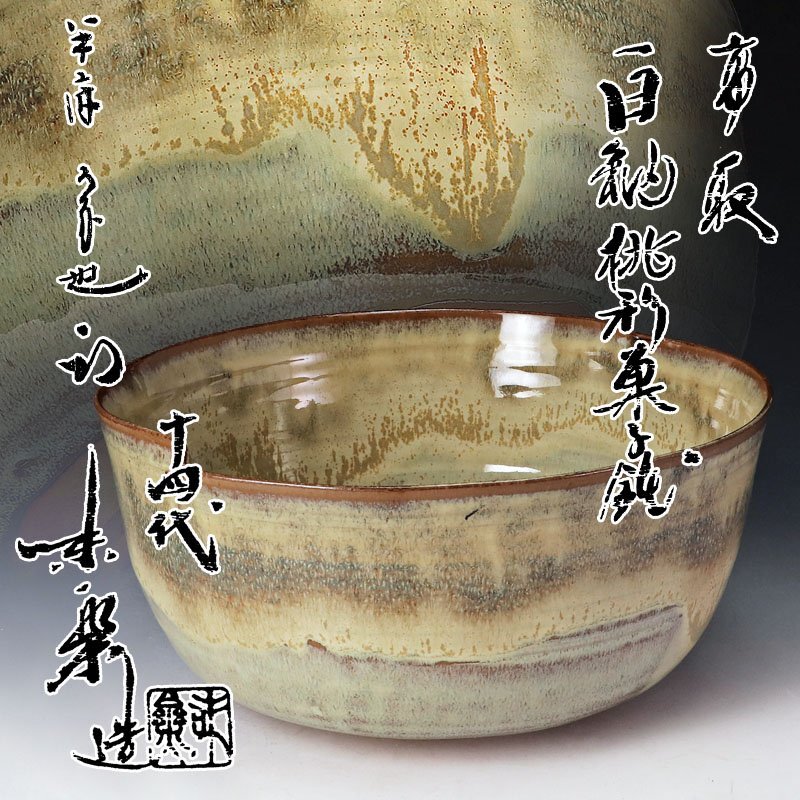 高取焼ならではの釉景が非常に美しく、味わい深い景色を生み出しています。 ★商品は十四代亀井味楽造、久田宗也(尋牛斎)書付の作品である事を保証致します。 |