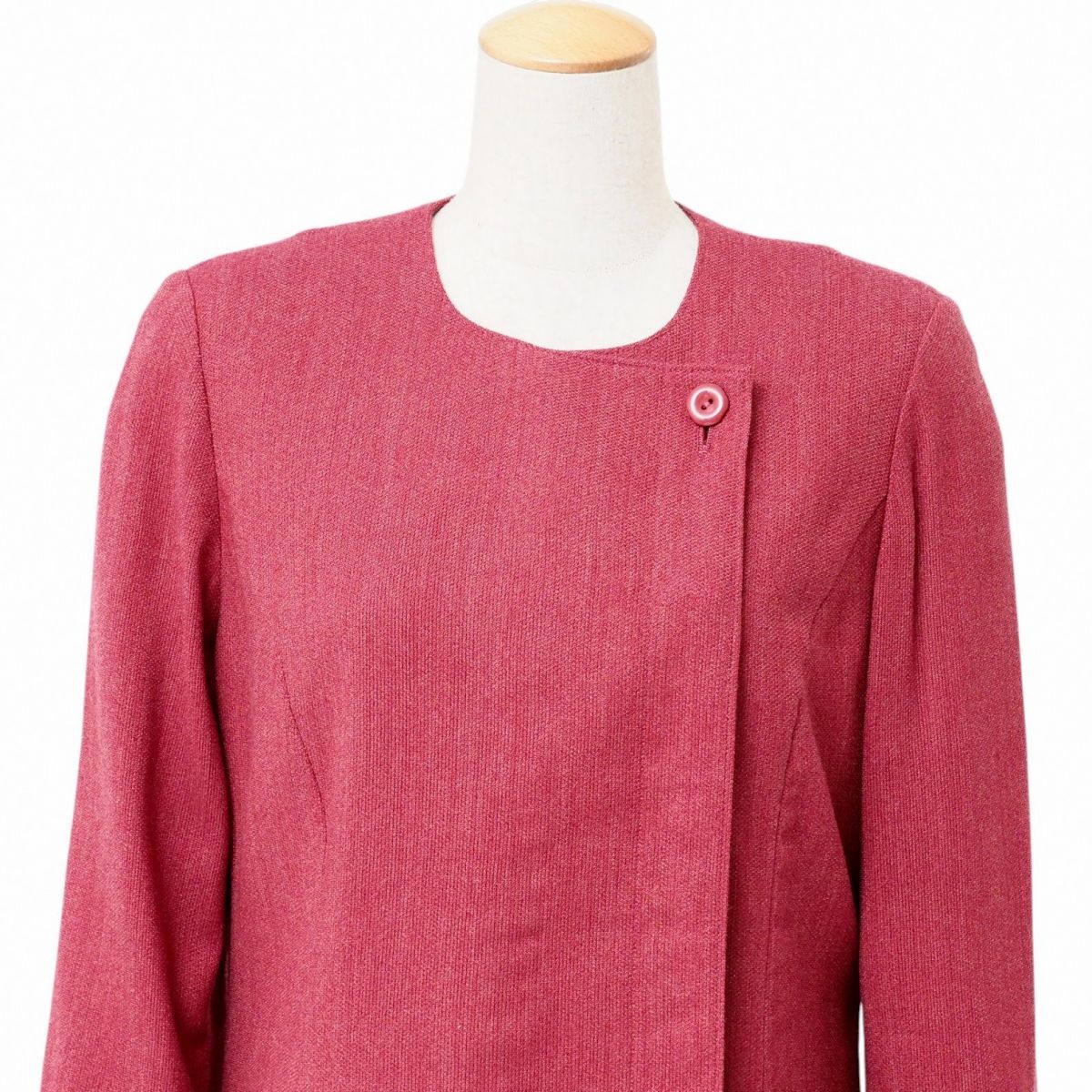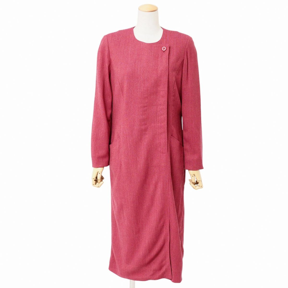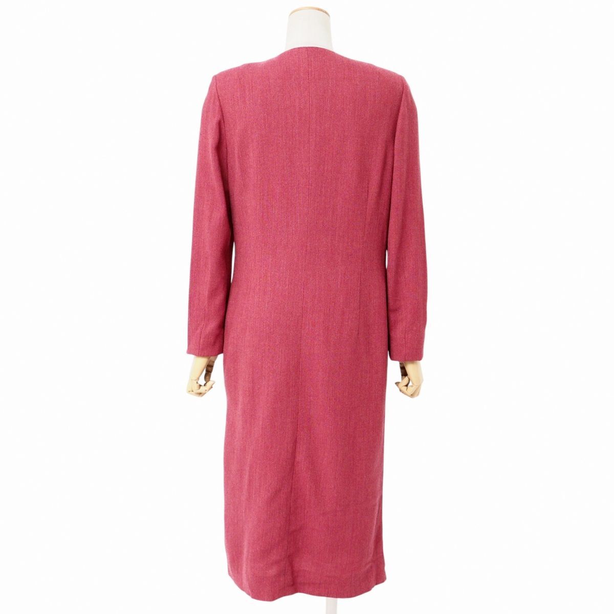 | GS4886☆ジュンアシダ jun ashida ロングワンピース フロントボタン 比翼仕立て ニット生地 長袖 レッド系 L相当 | |||