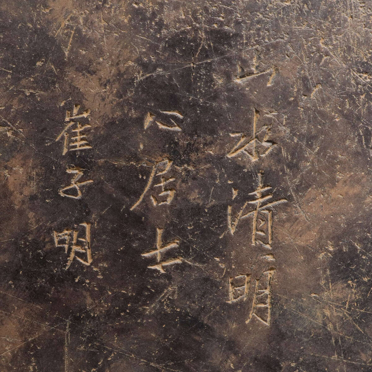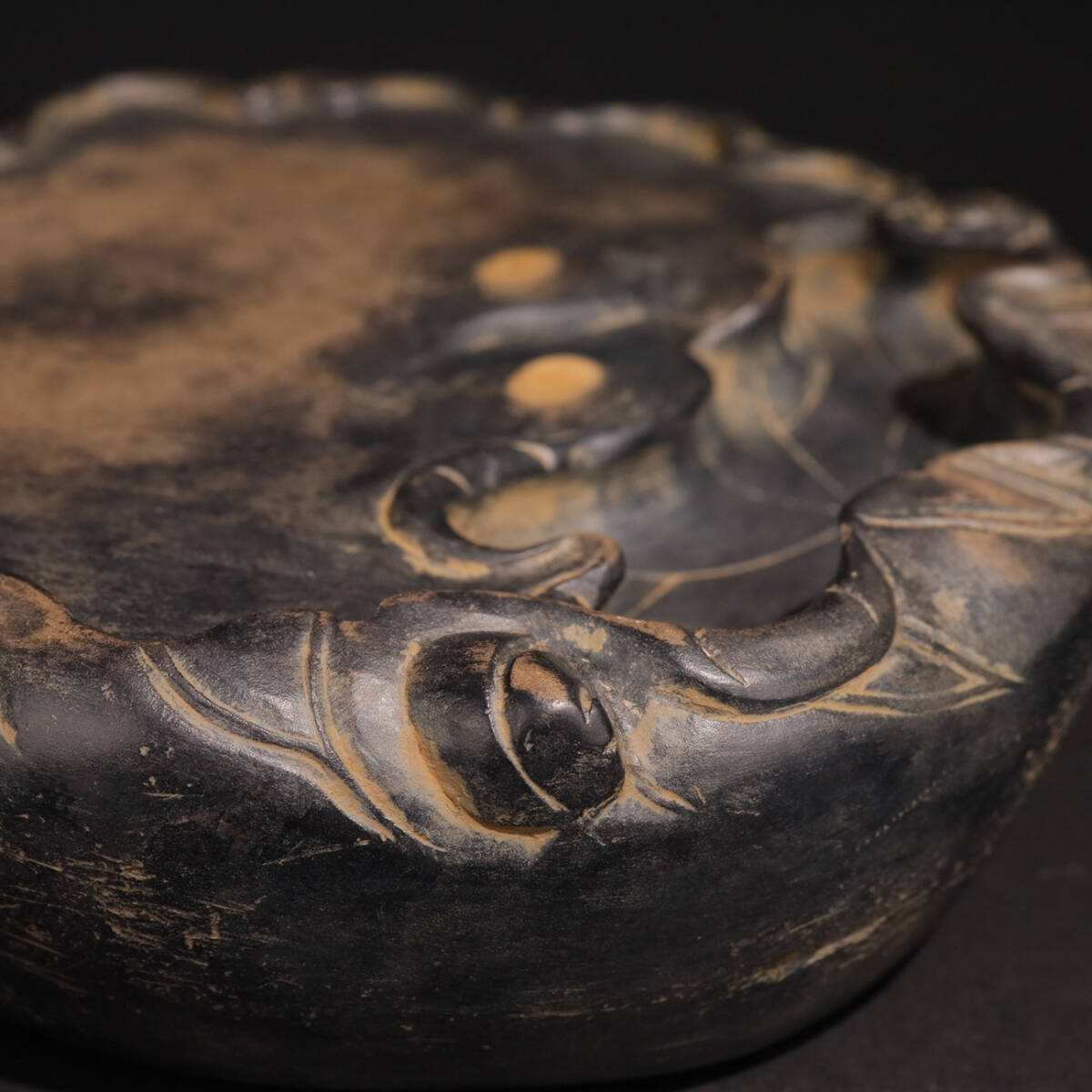 ◆御泓軒◆『清時代 老坑端硯 荷韻硯 崔子明銘』極細工・古賞物・中国古玩・中国古美術