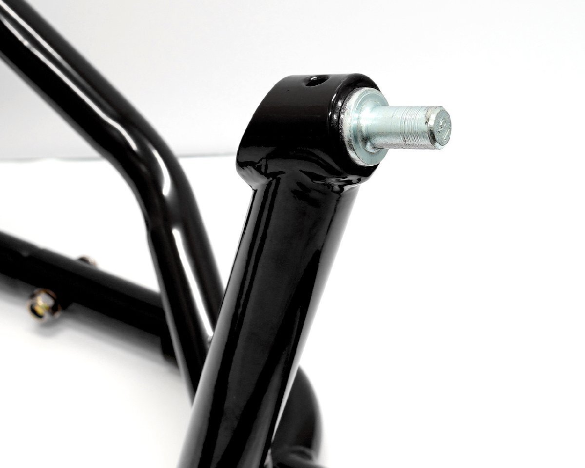 | 注意事項 | ※適合車種について、当社に各メーカーの車両データが無い為、適合に関してのご質問にお答えする事が出来ません。予めご了承ください。 ※こちらの商品は組立式です。 ※組立用工具は付属しておりません。 ※寸法は垂直方向を実測した値になり、キャスター角度によって変わります。 ※ステアリングステム下部に穴が無い車種は使用できません。 ※またホース・ケーブル類が干渉する場合は移動させてから使用してください。 ※使用する際は必ず、リアスタンドと併用してください。単体で使用した場合、製品の破損や車輌の転倒に繋がります。 ※車輌の状態や仕様、車種によっては、使用できない場合があります。 ※スズキのグラディウス400には使用できません。 ※仕様範囲外のタイヤサイズに使用する事は出来ません。予めご了承ください。 ※製品仕様、使用方法を熟知してからご使用ください。 ※誤った使用方法により生じた、商品破損、人体への傷害、物品への損害、その他のいかなる損害に対しても、当社では一切の保証、並びに責務を負いかねますので、ご了承ください。 ※本製品はメンテナンス用品です。ディスプレイや保管用としてなど、本来の用途以外には使用しないでください。 |