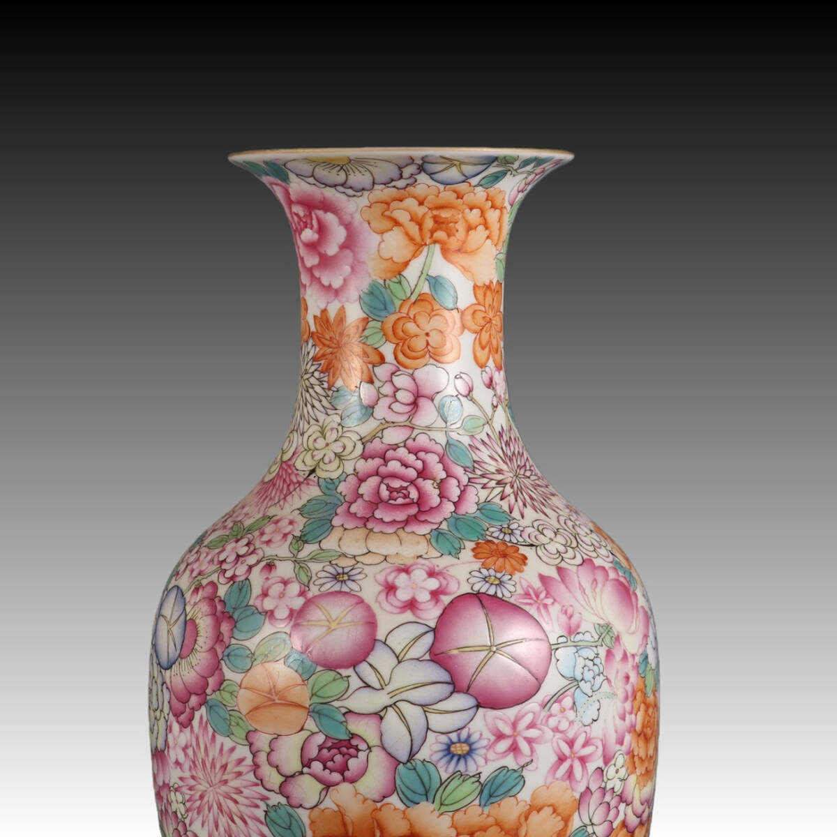 ◆御泓軒◆『清朝時代 陶磁器 粉彩百花不落地観音瓶 清乾隆年製款・箱付』極細工・古賞物・中国古玩・中国古美術
