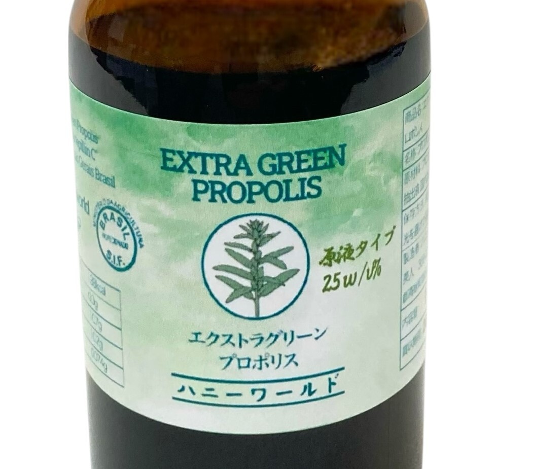高濃度原液プロポリス 品質コスパ最高 大容量100ml3~5カ月分 ブラジル 最上級グレード ブラジルミナスジェライス産 エクストラグリーンプロポリス 1本定価14800円 #プロポリス・アレクリン・エクストラグリーン・プロポリスハニー・ブラジルミナスジェライス 大容量100ml エタノール抽出 自然由来 無添加 最上グレード エクストラグリーン100% 高濃度 原液 25w/v% 原塊:ブラジル農業省認可検査済 市販の酒粕の平均的な濃度は50w/v%前後 50w/v%はほぼ固形物となります。 ブラジル産プロポリスの ブラウン、ダーク、パウダー、レッド、 グリーン グリーンA ミナスグリーン は使用していません。 最高ランク エクストラグリーンプロポリス100% ご使用方法(目安) 1日10~30滴を目安に、水やお好みの飲み物に混ぜてお召し上がり ください。 初めての方は、少量(数滴)からお試しいただくのがおすすめです。 プロポリス特有の樹脂成分が容器に付着します。 専用容器または使い捨てコップのご使用を推奨します。 気になる場合は、食用アルコールで拭いていただくと綺麗に落とせます。 ご使用後は、スポイトや瓶の口にプロポリス成分が付着したままに なりますと、スポイトが固着して取りづらくなる場合がございます。 清潔な布などにアルコールを含ませ、軽く拭き取っていただくことで 快適にご使用いただけます。 保存環境の温度変化により微量の澱(沈殿物)が生じる場合が ありますが、これは天然成分によるもので品質に問題はありません。 軽く振ってからご使用ください。 プロポリスは天然由来のため、採取時期、天候などにより色や、 濃度などに、わずかなばらつきが生じることがあります。 体質や体調により合わない場合は、使用を中止してください。