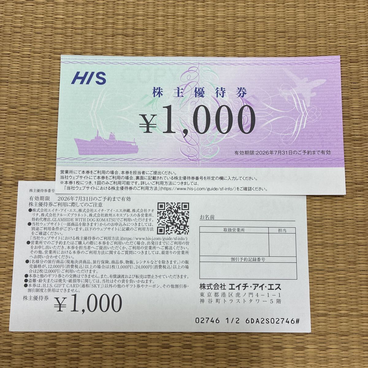 ■HIS エイチアイエス ◎ 優待券1,000円券 1枚 となります。 ■有効期限 2026年7月31日の予約分まで ■株主優待券のご利用方法 等 https://www.his.co.jp/ir/return/ https://www.his-j.com/guide/sf-info/ |