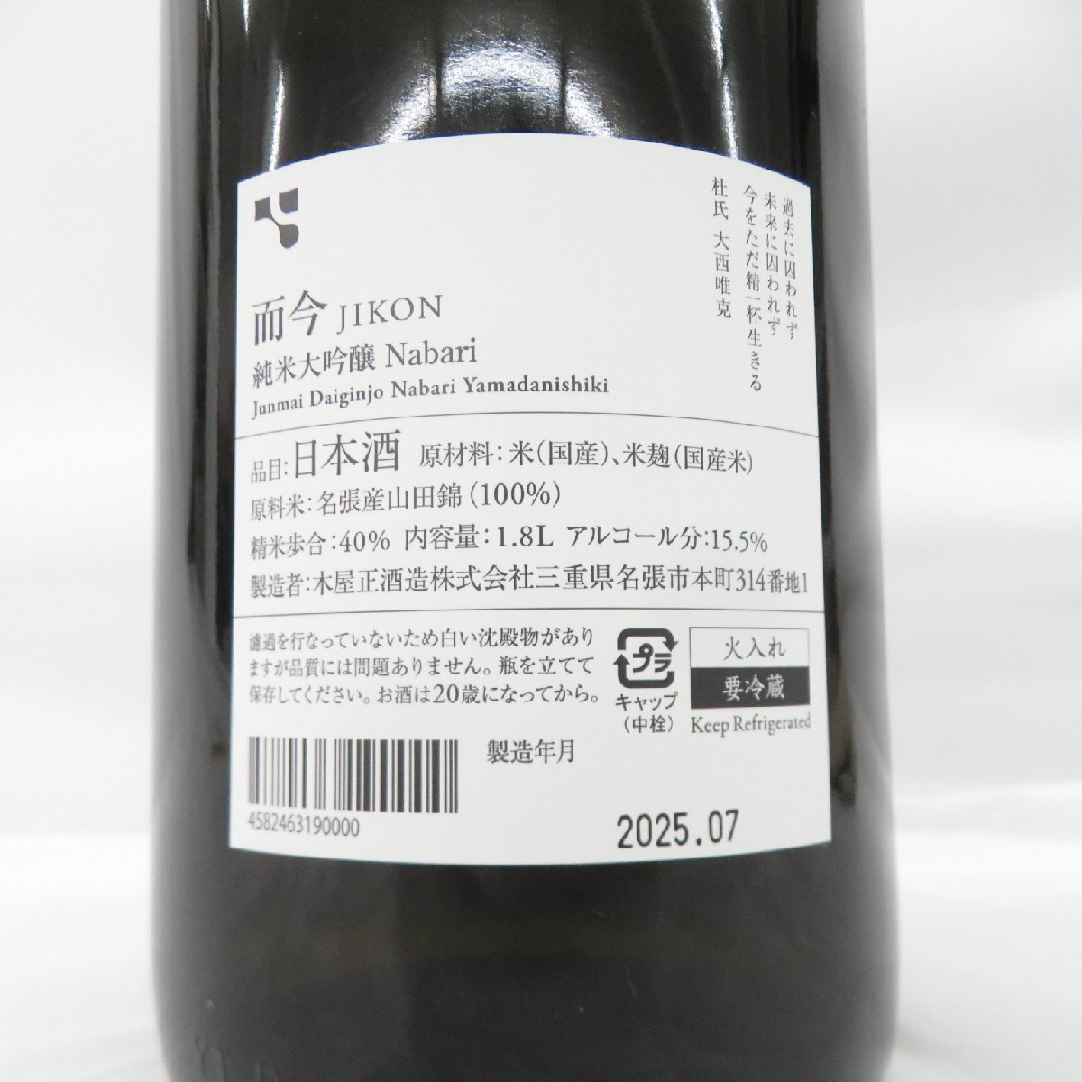 | 商品 | 【未開栓】而今 じこん 純米大吟醸 名張 2024 日本酒 1800ml 15.5% 製造年月:2025年7月 11964768 1112 |
