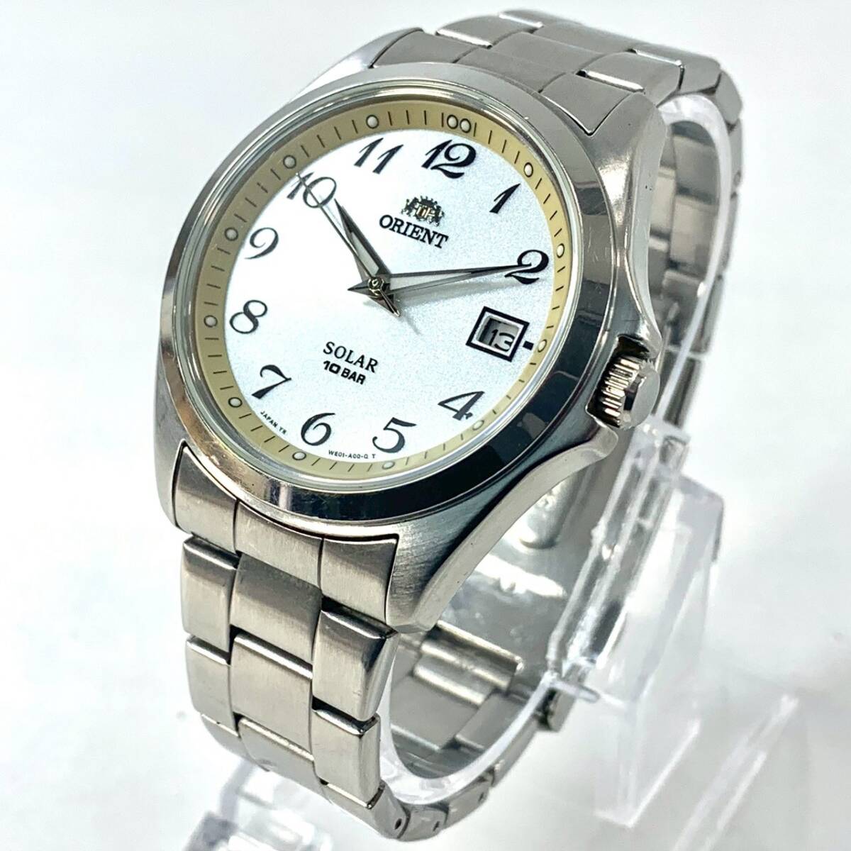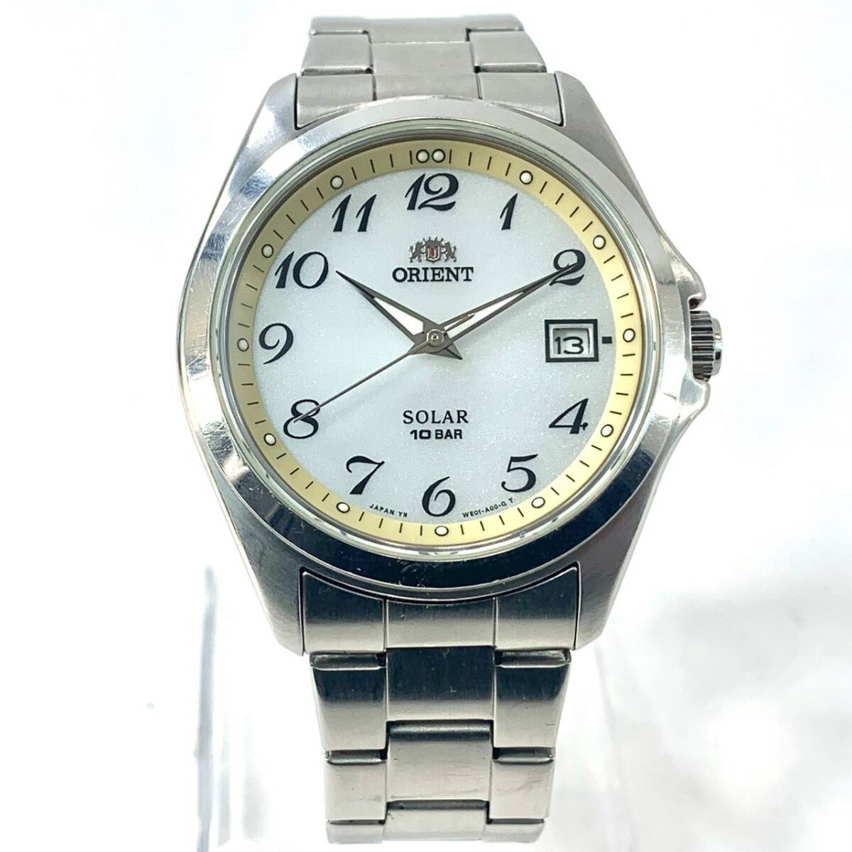 ORIENT SOLAR 10BAR 動作品 美品 WE01-C0-B 4.5×4.0 オリエント ソーラー Mens メンズ 銀文字盤 WristWatch Vintage Retro Old Used 腕時計 ヴィンテージ レトロ オールド 中古 クリーニング済 T16