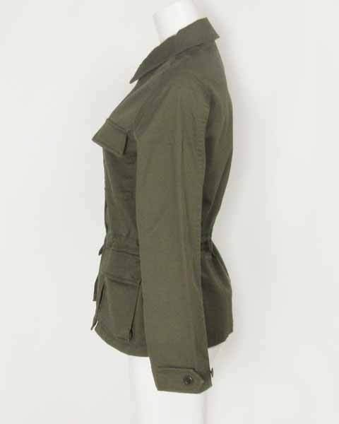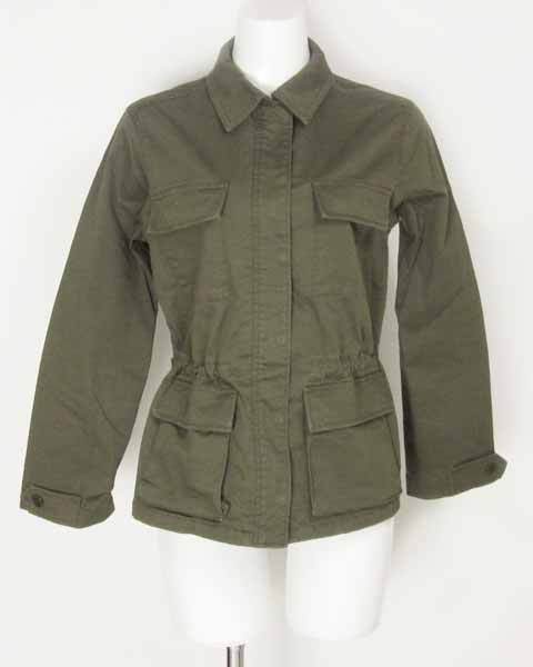 | 季節の変わり目におすすめの薄手ブルゾン♪ カジュアルライクなルックスで楽にお召し頂けます。 ウエストは裏側で紐を絞り、ブラウジングできるお仕立てで、 メリハリの利いたシルエットにもなります。 お袖口、裾に気にならない程度の白汚れが見られます。 着丈約61cm 袖丈54cm 肩幅39cm バスト約92cm 【サイズ】:(36) 【素 材】:(コットン97%・ポリウレタン3%) 【 色 】:(カーキ) 【程 度】:(AB) **** 12151028-003 427 005 | ||||