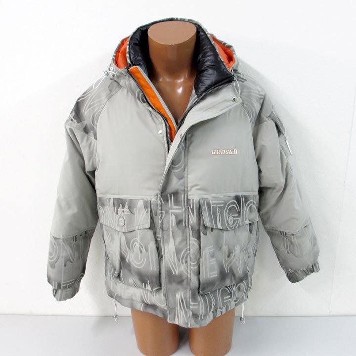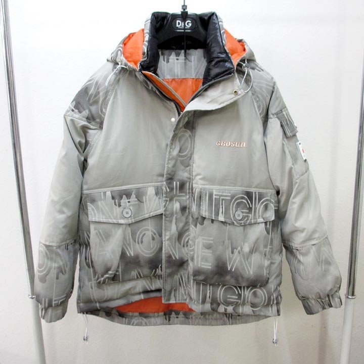 | grosunダウンジャケット新品未使用グレー&オレンジ灰フード付L中綿ポリエステル(qz12837) |