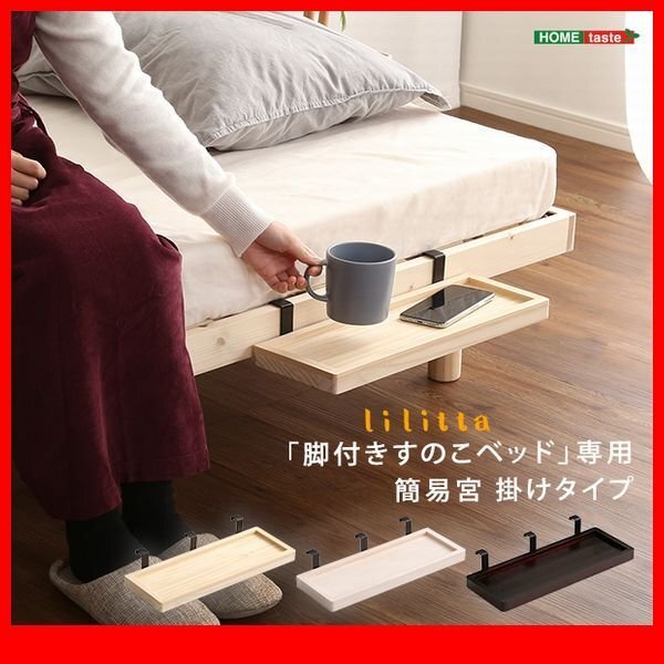 | 【ポイント】 ベッドフレームに引っ掛けるだけの簡単取付。 スマホなどの小物を置くのに便利なサイズで、好きな位置に取り付け可能な簡易宮です。 ※LPS(脚付きすのこベッド)専用商品です。 |