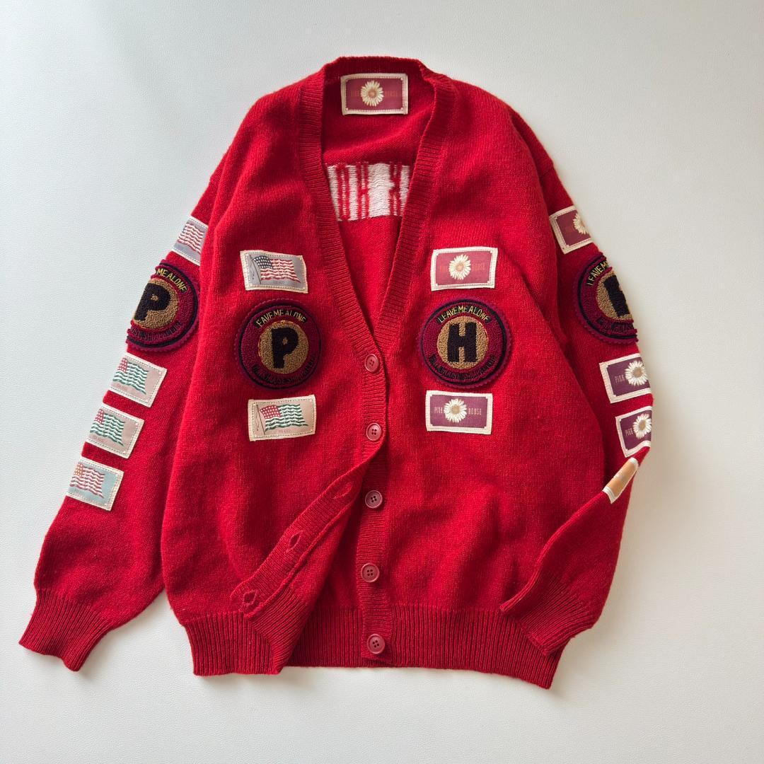 「PINK HOUSE」のワッペン装飾が華やかなニットカーディガン。 赤の発色とワッペン使いがコーディネートにアクセントを加え、毛100%の上質な素材感が暖かく冬の装いに映えます。 1点ものです。コレクターさん・個性派アイテム好きな方におすすめ 【ブランド】 PINK HOUSE/ピンクハウス 【商品名】 ワッペン装飾 ニットカーディガン 【カテゴリ】 メンズニット/カーディガン ユニセックス ※サイズ的にレディースにお勧めです♪ 【カラー】 レッド/赤 【素材】 毛100%(タグ表記) 【サイズ】 表記無し メンズS小さめMサイズ相当 レディースの場合、大きめMLサイズ相当 〈平置き採寸〉 肩幅 44.5 袖丈52.5 裄丈 75.5 身幅51 着丈62.5 ※素人の採寸故、多少の誤差はご容赦ください。 【コンディション】 (例:使用感あり/毛羽立ち数ヶ所/ワッペン・刺繍部分に薄い汚れあり/毛玉数個等) 【アイテム説明】 多彩なワッペン装飾 (ネームプレート風ワッペン等)をあしらった、インパクトのあるニットカーディガン。 カラーは鮮やかなレッドで、1枚で印象的なアクセントになるアイテムです。素材は毛100%で温かみがあり、厚みも感じられるため冬のトップスとして重宝します。 ※メンズ仕様ですが、女性の着用おすすめです。 ※身長160cmくらいでヒップが少し隠れるくらいかと思います。 ワッペン配置のユニークさがファッション性を高めており、ストリート・カジュアルどちらのスタイルにも適応します。 シーン ストリート/カジュアル/ライブ、デート、お散歩、休日 その他 ・中古品・保管品につき完璧を求める方はご遠慮ください。 ・発送は折りたたみ、匿名配送予定です。 ・撮影小物は付属しません。_ / / _ メモ:C864-‐7882131 |