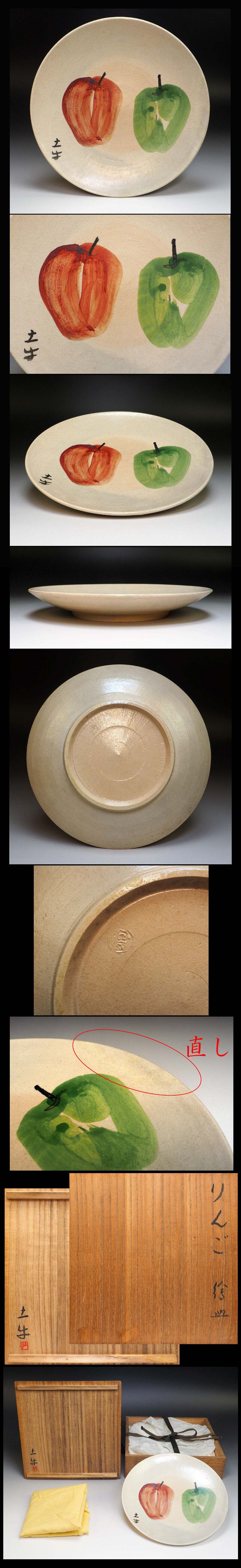 ![]() 文化勲章作家、奥村土牛が皿に描いた希少作「りんご絵皿」です。 サイズ:約 径19.6cm 高2.8cm 共箱付き 作品状態:一か所直しがありますが美品です。(目視確認です。) こちらの作品は真作保証の安心頂ける作品であることをお約束いたします。 不明な点は、入札前に質問等でご確認下さい。 奥村 土牛(おくむら とぎゅう、1889年〈明治22年〉2月18日 - 1990年〈平成2年〉9月25日) 現代日本の代表的な日本画家の一人。本名:奥村 義三(おくむら よしぞう)。号である「土牛」は、出版社を営んでいた父が寒山詩の一節「土牛石田を耕す」から引用してつけられた。院展理事長。芸術院会員。文化勲章受章。梶田半古、小林古径に師事。 | |||
