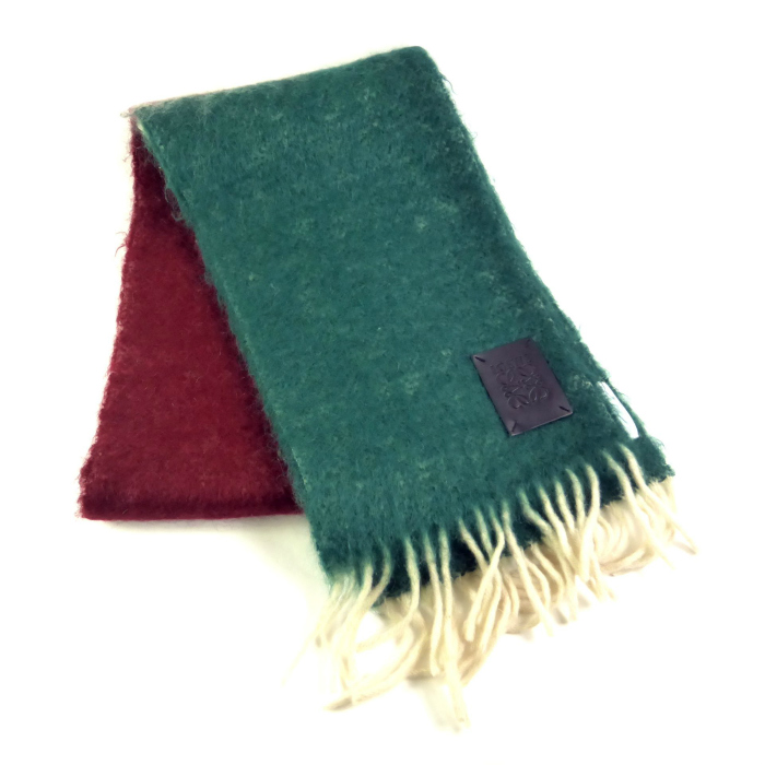 | ロエベ(LOEWE) ウール モヘア マフラー A28003861 グリーン×レッド(中古) |