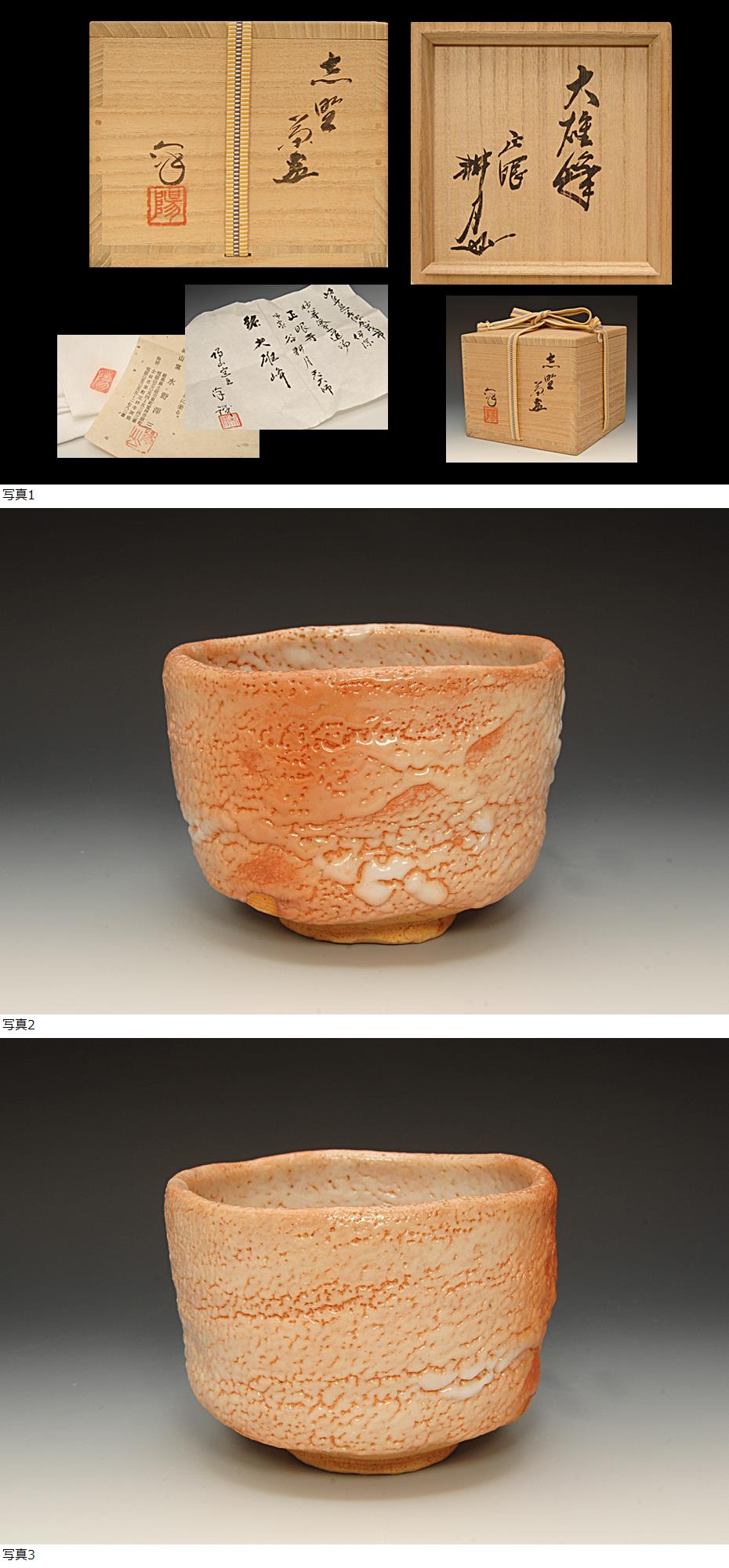 ☆星夢☆5 水野澤三 志野茶碗 銘:大雅峰 谷耕月書付 共箱 茶道具