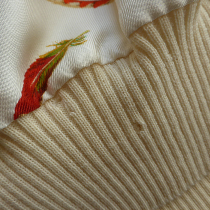 | シルク部分に僅かに汚れ、リブに数か所小さな穴あきが見受けられますが、まだまだお使いいただけるお品です。 |