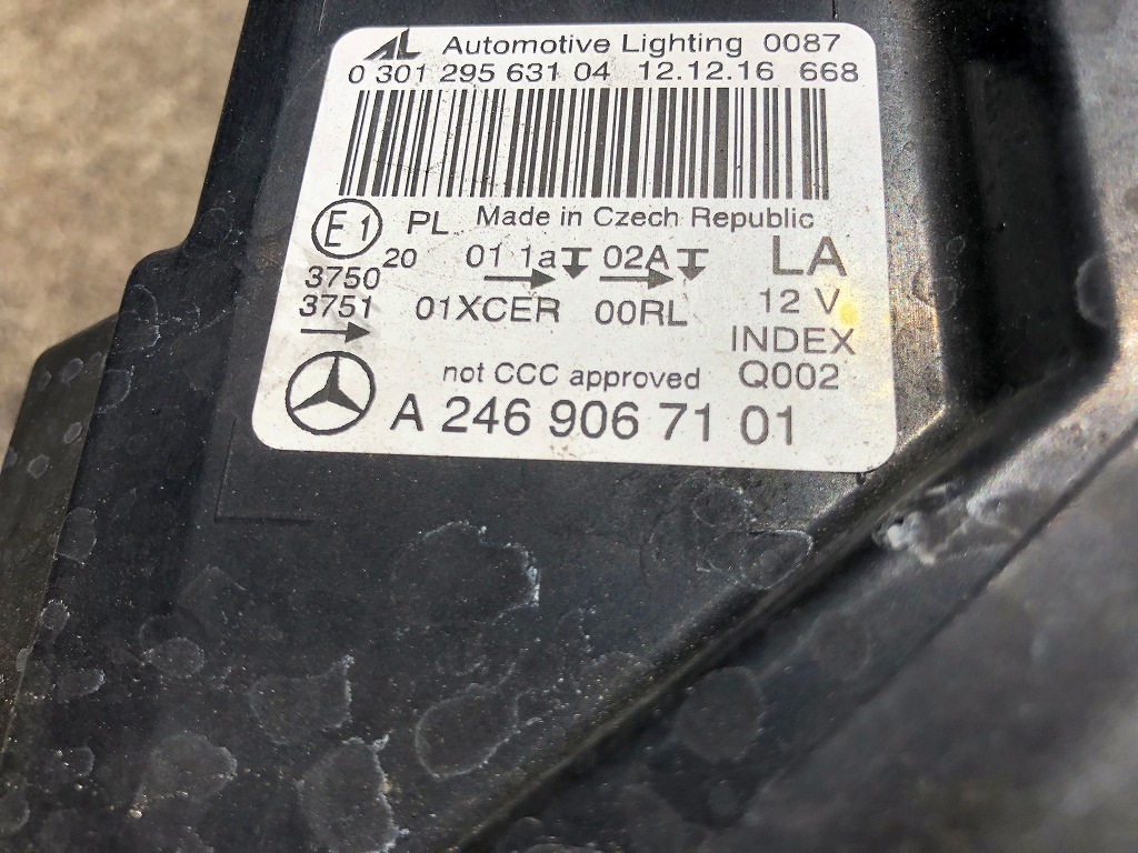 | メルセデス・ベンツ Mercedes-Benz Bクラス W246 後期 LED ヘッドライト 左 品番:A2469067101 部品番号:A2469067101 ※中古品・新品ともにノークレームノーリターンでお願いします。 ※写真では写りずらい細かなキズ等もございますのでご了承願います。 ☆出品者コメント☆ ■保管に伴う傷が発生する場合があります。 ■レンズ部分小傷あり ■留め具割れはありませんでした。 ■中古品につきましては、リペア前提でお考えください。 ■写真と商品説明から状態、品番をよくご確認ください。 なるべく綺麗にクリーニングしてから撮影をしておりますが、 中古品になりますので、消耗・使用感・小傷・汚れ等がある場合がございます。 商品の写真、詳細説明等をよくご確認ください。 又、トラブル回避のためご不明な点がございましたら、 質問等して頂き、ご理解頂いた上でご入札ください。 バンパー・マフラー等のサイズの大きな商品は、 個人宅宛ですと送料が高くなります。 営業所止めまたは、自動車修理工場など、 法人様宛の発送をお勧め致します。 -------------------------------- 発送詳細 ★佐川急便★ 【元払い、着払い】 60~260サイズ対応 【3辺合計が260未満の商品】 ★西濃運輸★ 【元払い】 261サイズ以上~対応 【3辺合計が260を越える商品】 ※送料はお客様のご住所にてお見積もりしております。 ※詳細をご希望のお客様は質問等でご連絡をお願いします。 ※直接のお引き渡しは原則対応しておりません。 やむを得ない理由がある場合はご相談くださいませ。 -------------------------------- 当社では同時梱包に対応しておりますが、サイズ・形状により同梱発送ができない場合がございます。 同梱発送ができない場合は、1個口毎にサイズ別の料金が加算されますのでご了承ください。 ※上記運送会社以外の発送は受け付けておりません。 ※梱包代金は商品代に含まれています。 -------------------------------- 支払詳細 ・!かんたん決済 ご入金確認後【発送は2~3日以内】3日間程度での出荷目安とさせて頂きます。 弊社では送料が高いことを考慮の上、商品代を当初より大幅に値下げさせて頂いております。 したがいまして、送料・品質の良し悪し・価格 のトータルでご検討くださいませ。 -------------------------------- 注意事項 ■新品商品につきましては商品を分かり易くご案内する為に開封する場合がございます。 ■あくまでも中古品というご認識をお持ちくださいますようお願いします。 ※ご注文と全く異なる商品が届いた場合のみ返品を受付いたします。 あくまで、中古品であり、ノークレームノーリターン リペア前提という説明を添付しております。 ↓↓ したがいまして、以下のケースは受付できませんのでご理解願います ↓↓ * 届いた中古商品がイメージと違う * 商品の形状が明らかに異なり輸送事故の可能性がある場合には運送業者に申告をして下さい。 ※出品点数が多い為、各商品の説明文を統一し省力化しております。 ☆☆☆ 皆様とのご縁を心よりお待ちしております ☆☆☆ 送付方法 ・ 佐川急便・西濃運輸 | |||