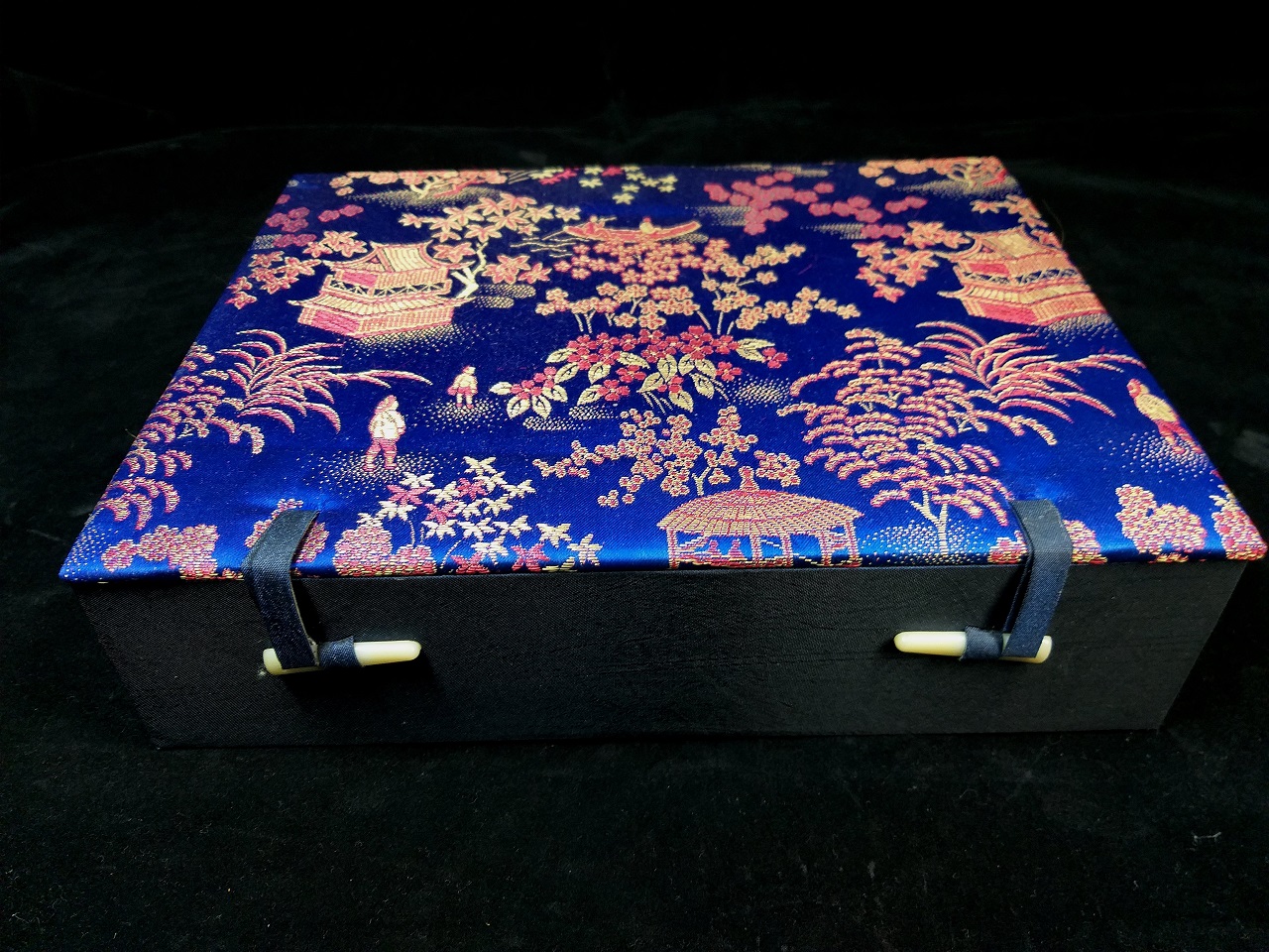 この一品は、最高級超大硯専用手工芸絹麻張り木製収蔵ケース(箱)付きます。このケースは、この高彫端硯専用に注文オーダーした品です。