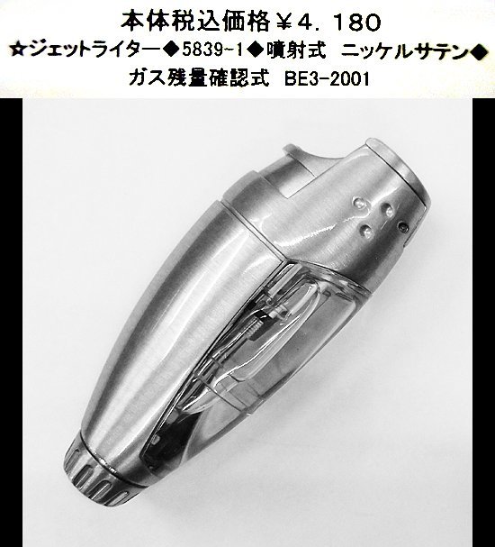 現物を写真撮影、お手元にこの写真の品が届きます。ガスジェット式(噴射式)ニッケルサテン柄です。高さ80mmx幅31mmx厚み20mmx重さ54.8g。ビンゴが出品している全ての商品は、店頭販売、他オークション販売、ショッピング販売等重複し販売しております。時間差で売れ切れや、出荷点検検等で傷が付いていたり破損している事もあります。従いまして、お買い上げ頂きましても出荷出来ない場合も有りますので、予めご了承の上お買い求め下さい。尚、同じ型の商品が取り寄せ可能の場合は、改めてその旨お伝え致し、ご了承の際は数日お待ち頂く事になります。ご注文商品は他商品と同梱配送出来ますので、何個ご注文されても送料は1口分です。1.レターパック発送 ¥600 日時指定不可。(郵便レターパック)。2.宅配便発送税込み ¥880日時指定必須(沖縄/離島は別途価格)。必ず 受取日時 をご指定下さい。(例:15日 18~20 時必着)再配達防止の為。 (業者は当社にお任せ)。3.代金引換発送引手数料税込み ¥1、210 日時指定必須(沖縄/離島は別途価格)。 必ず 受取日時 をご指定下さい。(例:15日 18~20 時必着)再配達防止の為。(業者は当社にお任せ)。