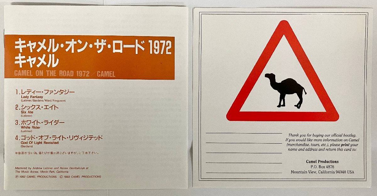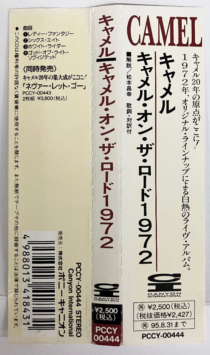 CAMEL / CAMEL ON THE ROAD 1972 (1972)日本 PCCY-00444 帯付き ジャケット:EX 盤:EX 日本語解説付き。 帯に軽い日焼けあり。 ジャケット、盤面共に目立つキズや汚れはありません。 (詳しくは「商品情報の見方について」をご覧下さい。) |